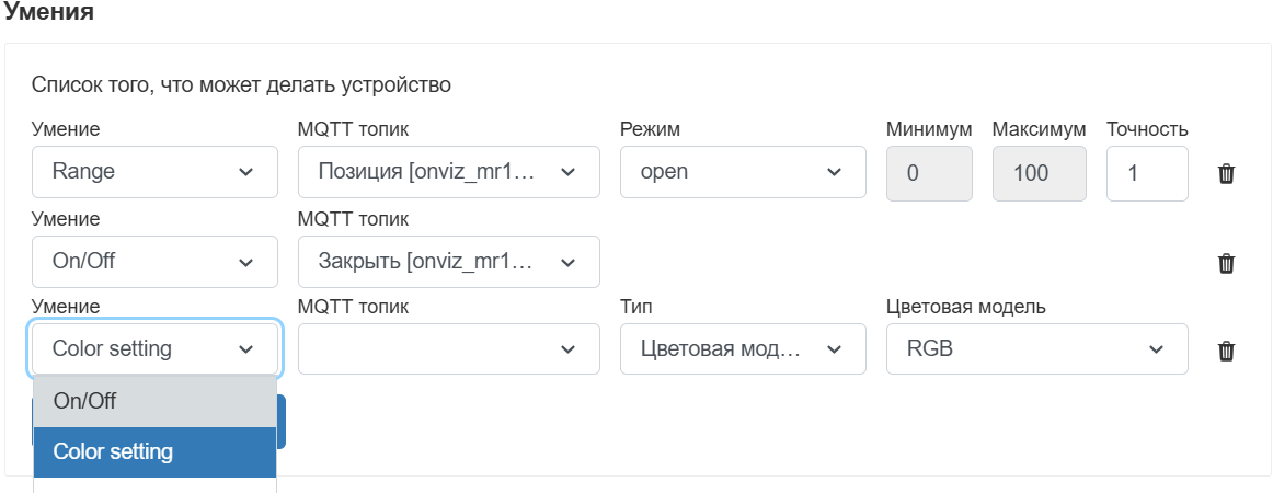 on_offcolor_setting (цвет (rgb) или температура цвета)rangeДоступные свойства: