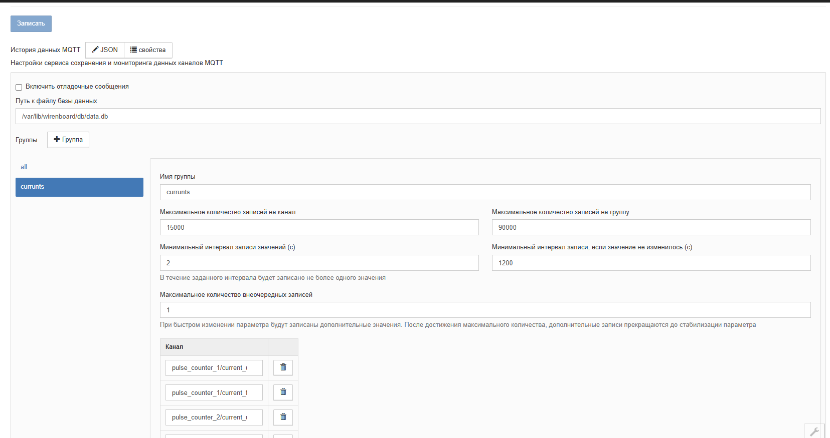 Данный сервис логирует все данные. Для работы нужен wb-mqtt-db-cli, который выше уже использовался в скрипте.