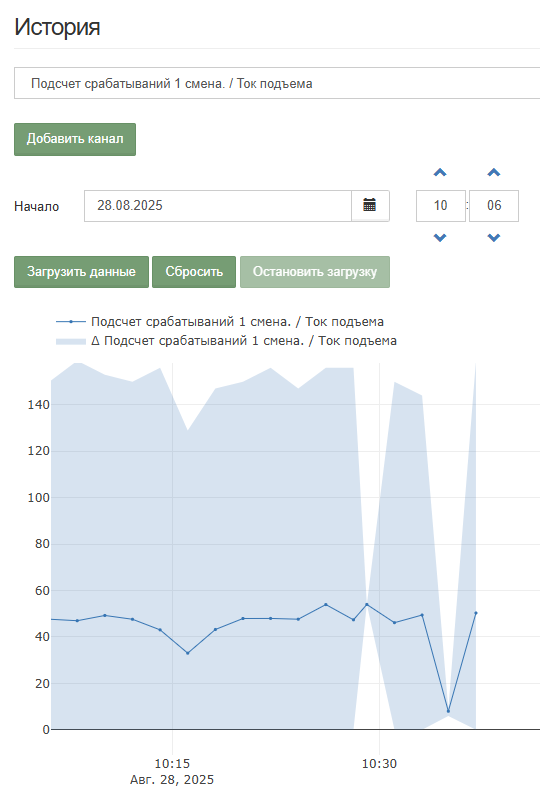 Оператор на большом экскаваторе поднимает ковш, в ковше ценный грунт, при подъёме ковша ток возрастает. Надо считать ковши. Я решил отслеживать ток и считать пики. Оператор поднимает полный ковш - ток большой, потом опускает ковш на землю и ток 0, потом зачерпнув грунт он опять поднимает ковш и ток опять вырос. Вот эти пики тока я и хочу считать?