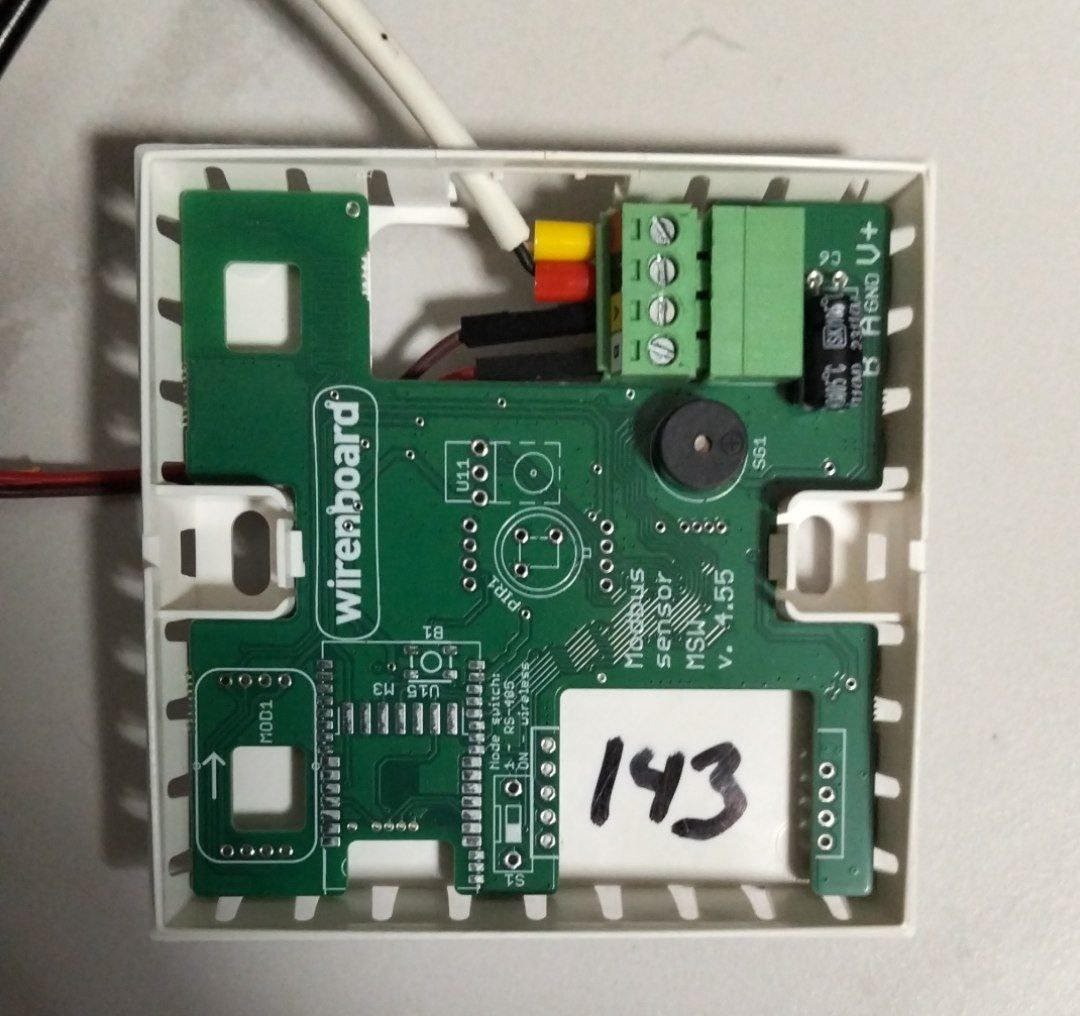 Перестал работать датчик WB-MSW v.4 TH, куплен в октябре 2025, установлен месяц назад, без контроллера, на шине еще с ним реле которое работает исправно. Загорелся зеленым и не определяется ни через шлюз (овер тсп и просто тсп), ни через USB RTU. Шина в порядке - на его место втыкал другой датчик, с другой шины - работает, пробовал этот датчик на другую шину (вместо рабочего датчика, на шину 24в, т.к. он стоит на 12в) - тоже ничего. Пробовал у коллеги подключить на шину к контроллеру - контроллер не видит ни в режиме медленного сканирования, ни в режиме загрузки. Еще сегодня в 6 утра все было нормально. В общем чтобы я ни делал - никаких признаков жизни, только вечно горящий зеленый диод
