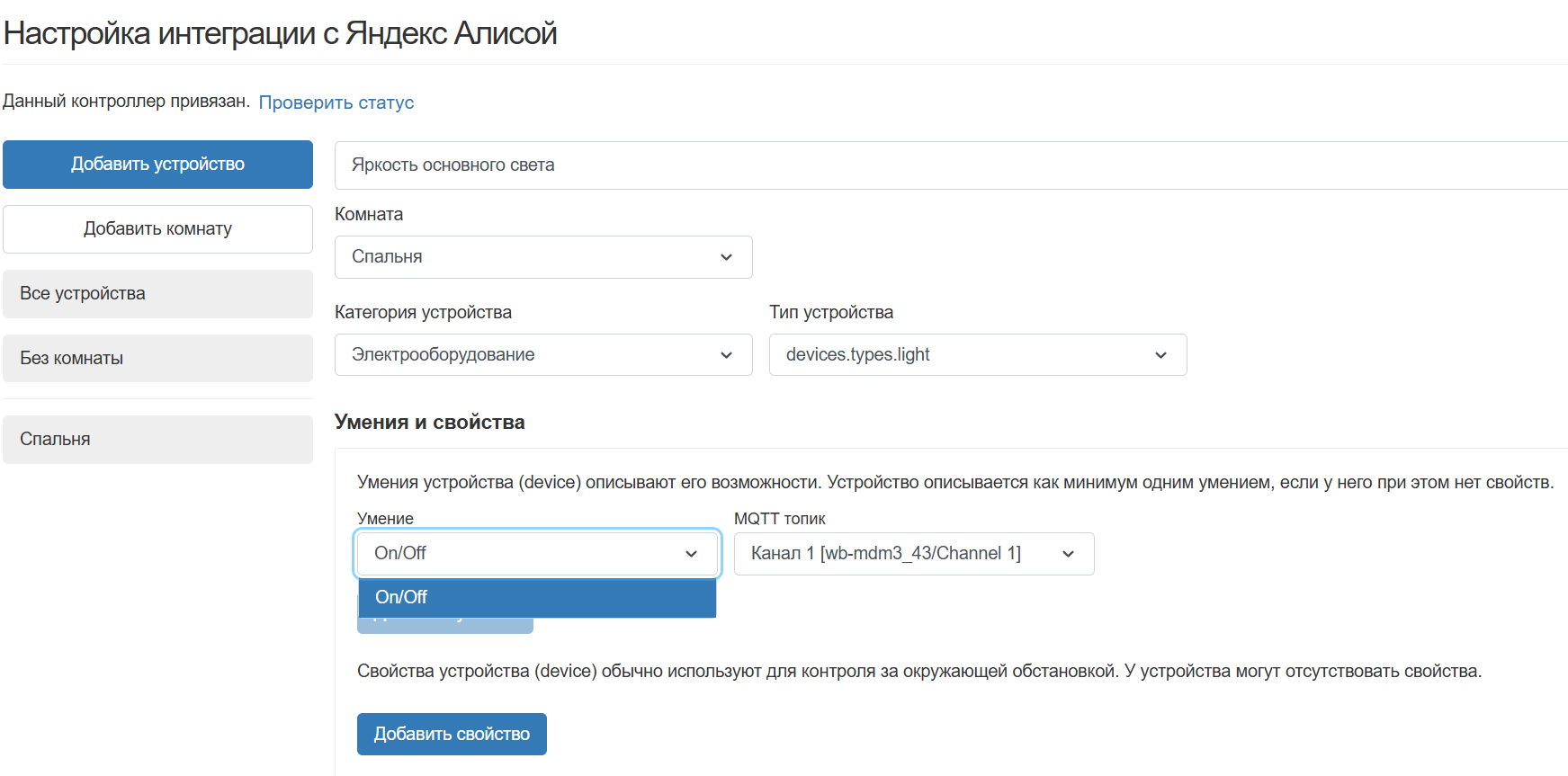 Есть WB7 хочу настроить интеграцию в Алису, в доке написано что доступно 3 умения.