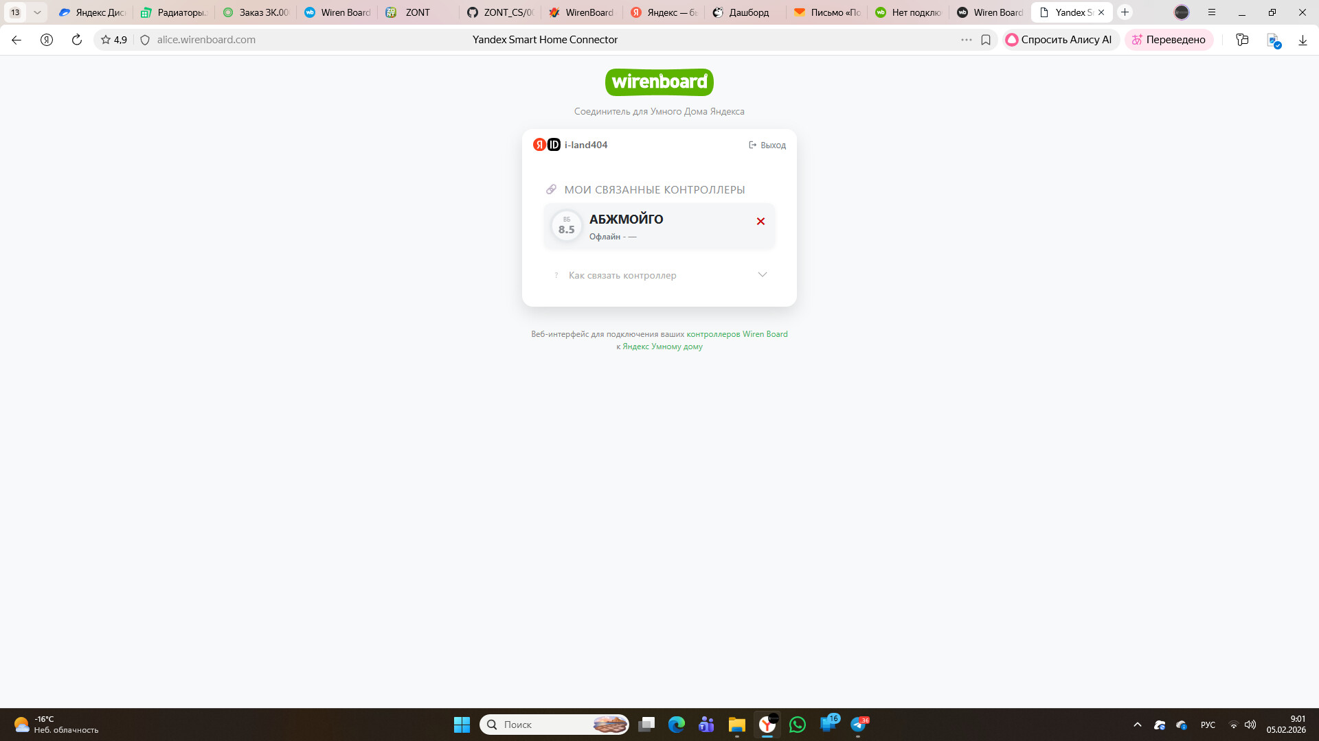 Контроллер также не перейдет в статус онлайн, если у указанного пользователя не добавлен навык.