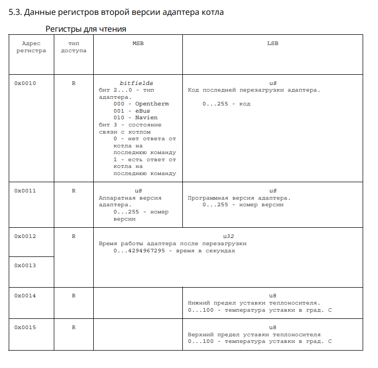 Адаптер eBUS для системы ectoControl - 3590 руб. | ectoControl.ru. На сайте выложен документ с регистрами modbus