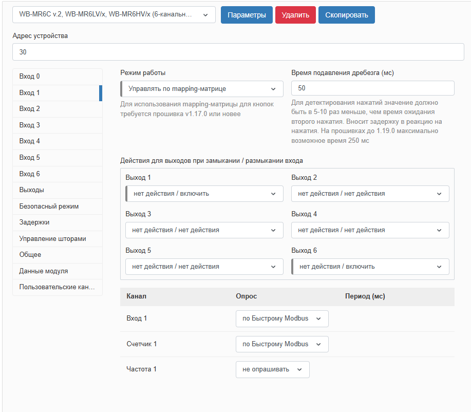 Настроить управление - выключатели с фиксацией без маппинг-матрицы