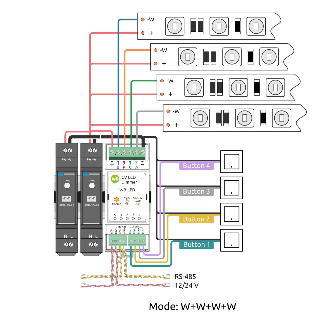 Добрый день. Подскажите, надо подключить 2 блока питания к wb-led (блоки питания поддерживают параллельное подключение - SDR-480P-24 MEAN WELL), как это правильно сделать?