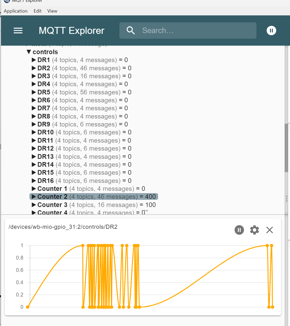 Это, скорее всего, еще Wiren Board 5, он уже даже и не на поддержке у нас. Я возьму паузу, попробую вспомнить, что и как на пятом контрроллере можно продиагностировать. Точки на MQTT Explorer говорят, что новые данные публикуются, конечно.