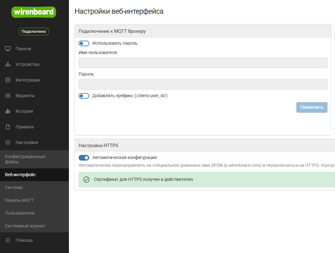 Теперь после обновления убрал глобальный пароль nginx и добавил несколько пользователей. С удивлением обнаружил что пользователи могут видеть значения параметров топиков. То есть пароль в “Подключение к MQTT брокеру” у пользователя не задан, а все топики видны. Раньше, если ты не авторизовался в “Веб-интерфейс-Подключение к MQTT брокеру” то вообще весь веб-интерфейс не работал, писал “отключено”. Теперь работает.