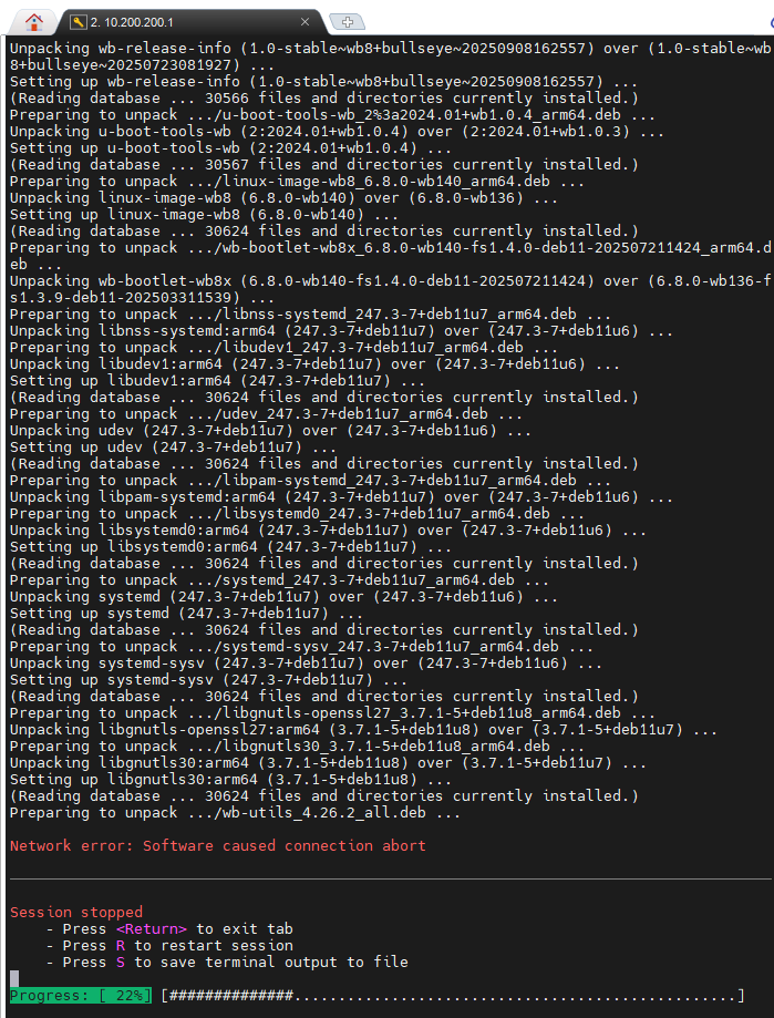 Я хотел выполнить на Wirenboard 8 команды sudo apt update и sudo apt upgrade в терминале.