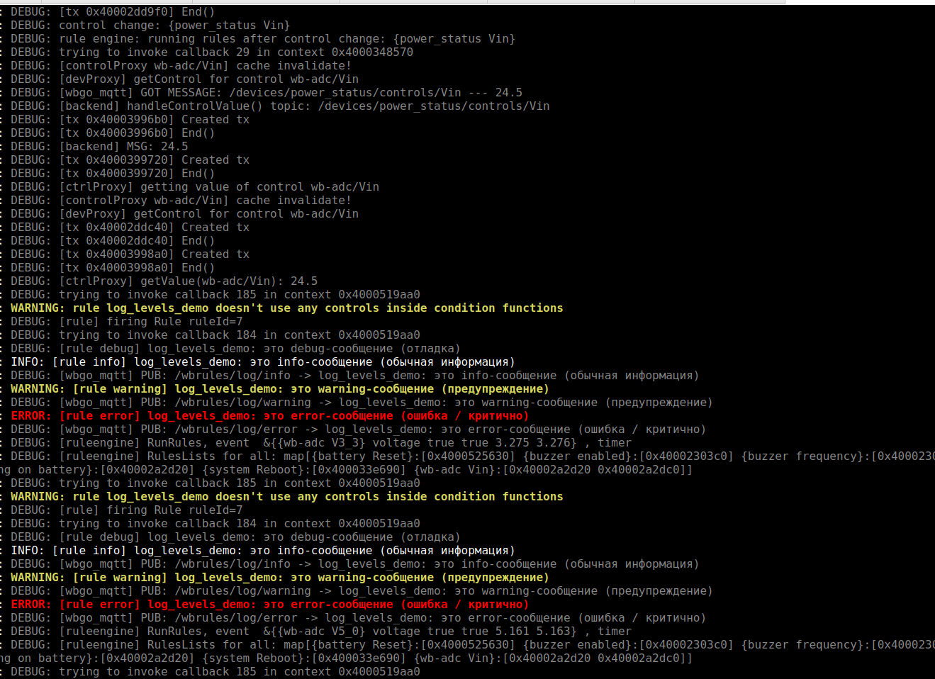 Ну, в принципе пока вывел через Terminal через journalctl -u wb-rules -f… Тоже пойдет