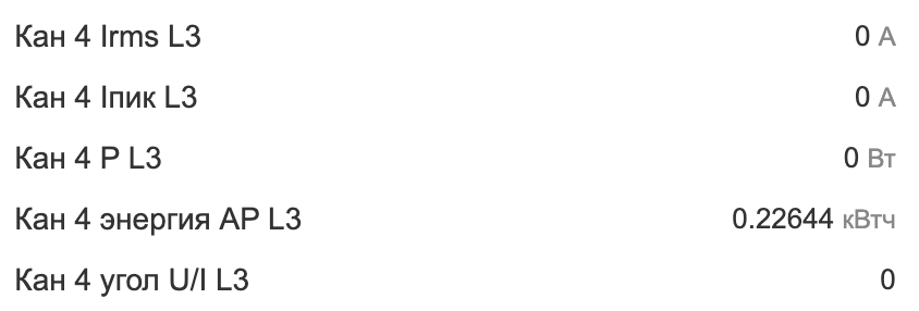 Судя по счетчику на канале AP L3, накопленное потребление фиксируется, но мгновенные значения равны 0.