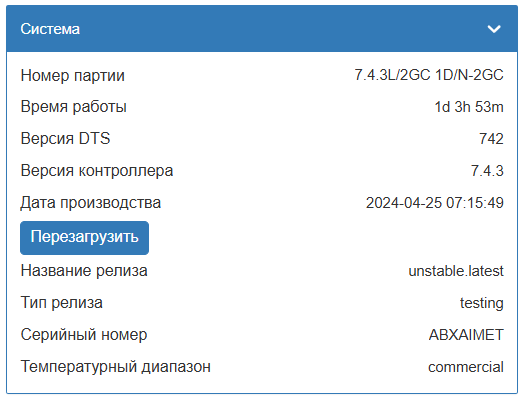 - серийный номер устройства, его комплектацию (установленные сенсоры или внутренние модули расширения),
