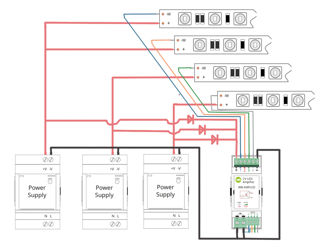 Правильно ли я понимаю, что так подключать можно WB-LED или WB-AMPLED. Если да, то какие характеристики требуемых диодов