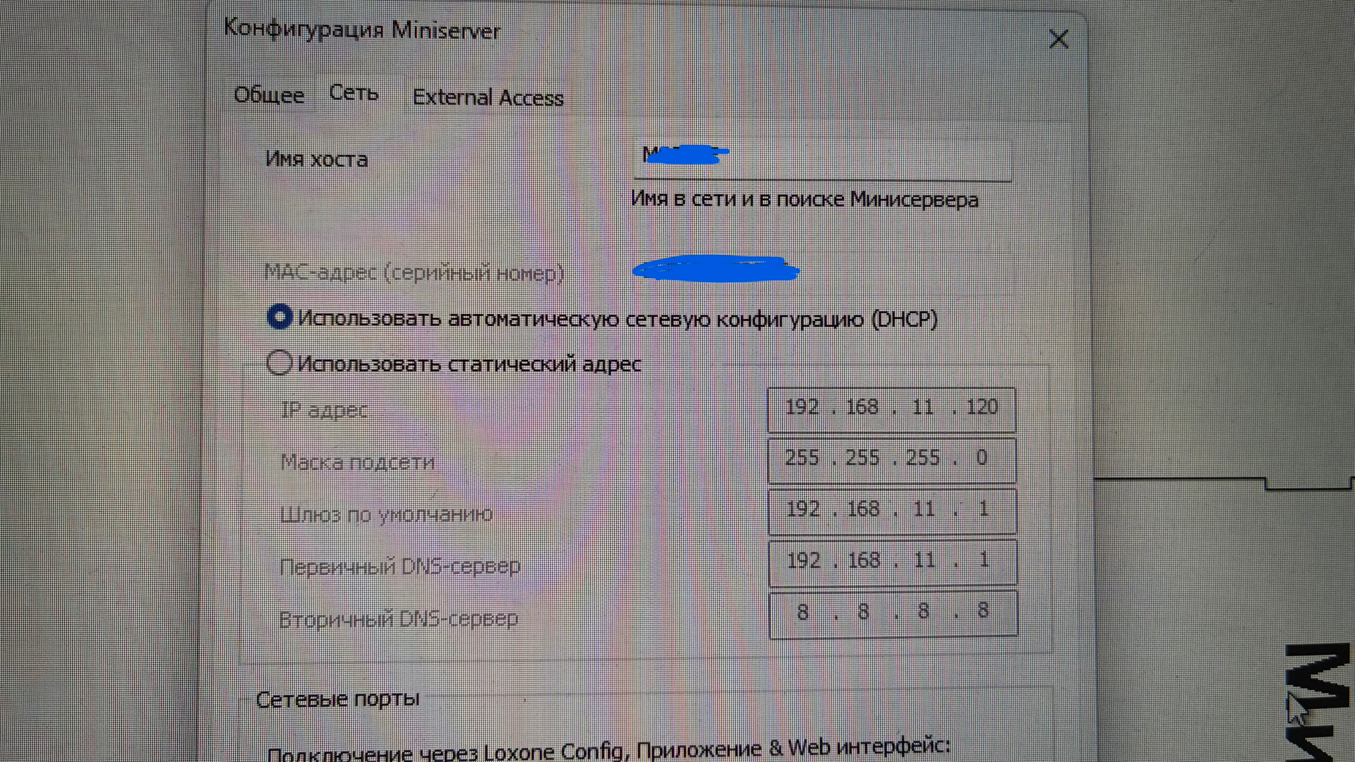 Теперь Loxone получит адрес в подсети 192.168.11.0/24 по DHCP. При необходимости можно задать фиксированный адрес в этой же подсети.