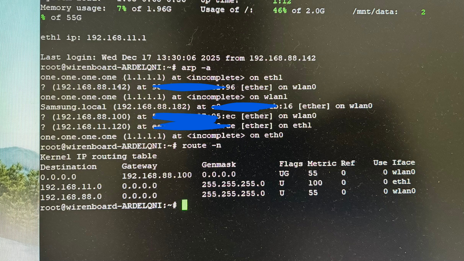 Мой контроллер подключён к локальной сети через Wi-Fi, к интерфейсу eth1 контроллера подключён ноутбук (вместо вашего контроллера Loxone), который получает IP-адрес по DHCP от контроллера.