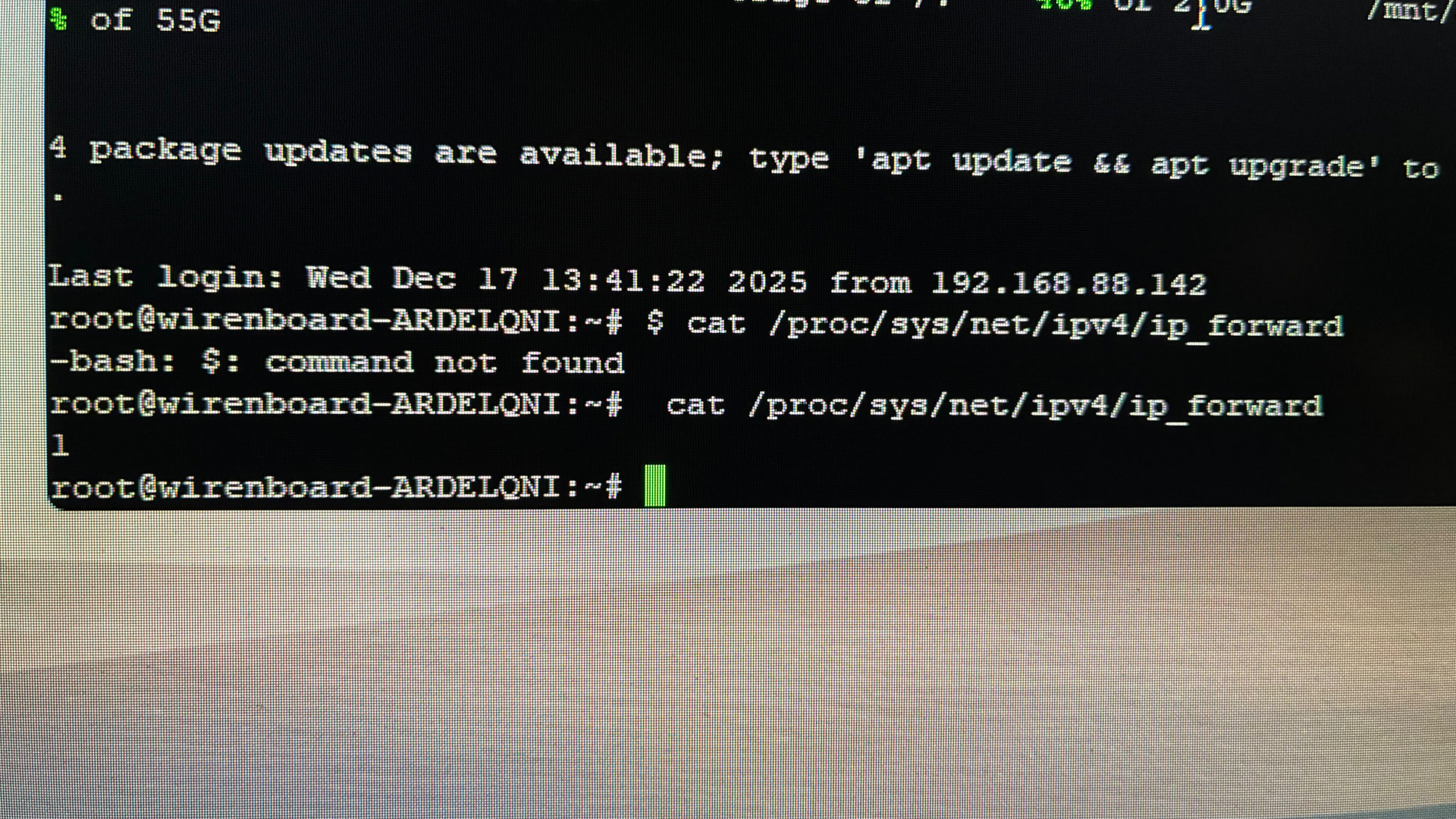 $ cat /proc/sys/net/ipv4/ip_forward