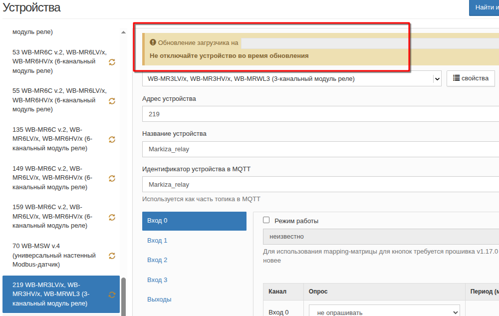 Если перезайти в UI, то напротив этого устройства никакого значка уже не будет, как если бы оно было уже на самой актуальной версии, но это обманчивое впечатление - после перезагрузки контроллера он снова покажет старые версии и предложит обновить устройство.