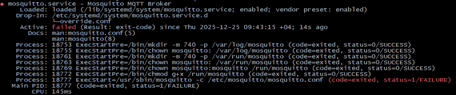 Dec 25 10:19:26 wirenboard-AACLUYTY systemd[1]: mosquitto.service: Failed with result ‘exit-code’.