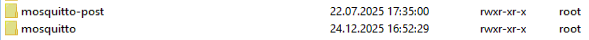 При этом если пользоваться утилитой mc, папку mosquitto-post также не видно: