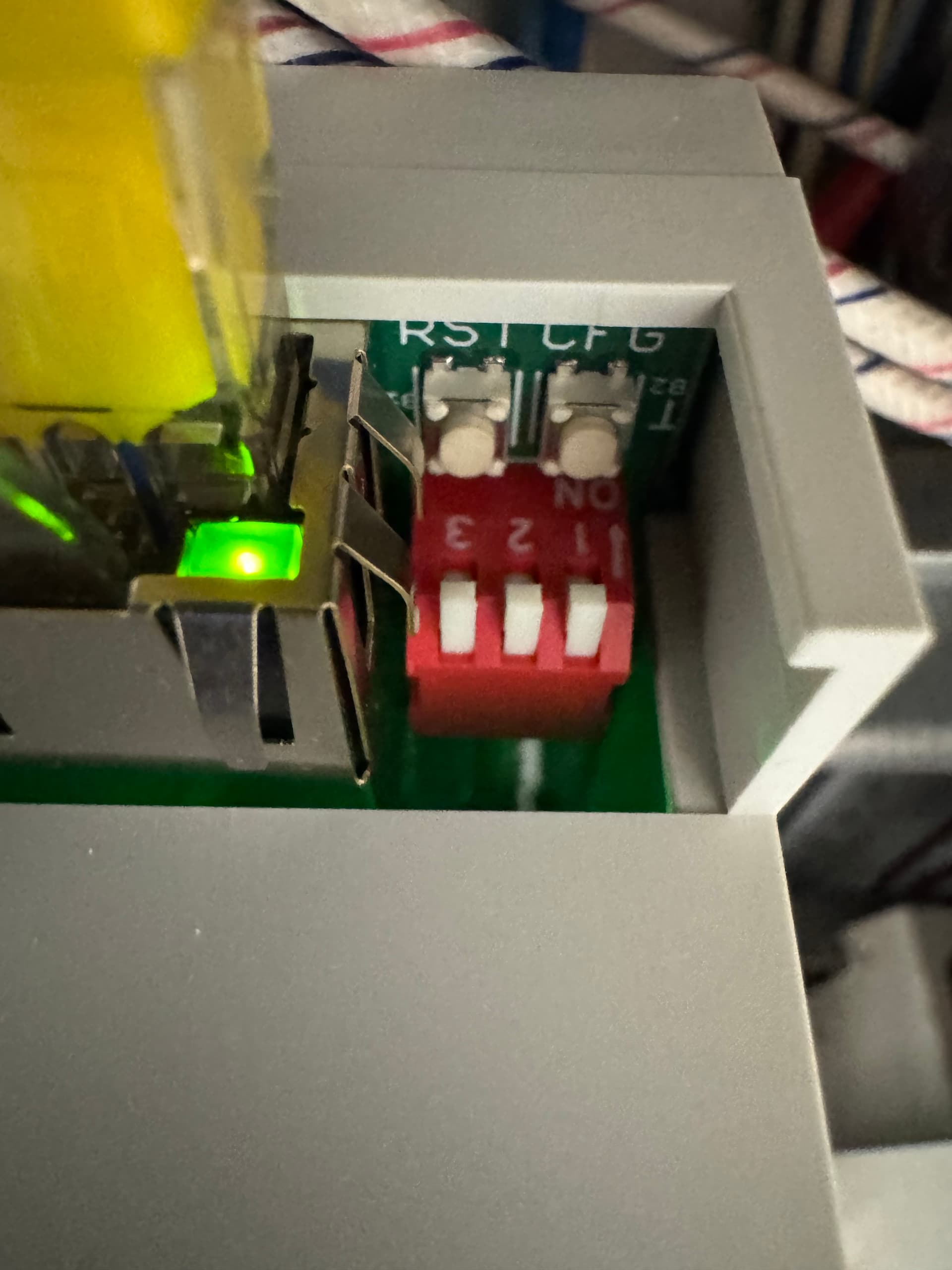 У меня есть подозрение на корректность работы шины (я специально прикладываю фото переключателей) Стоит отметить, что до этого они были в инвертированном положении, потому что в инструкции написано что по умолчанию они выключены, хотя из коробки они все были направлены в сторону надписи ON (это я уже в ходе разбирательст определил) Хотя возможно я путаю.