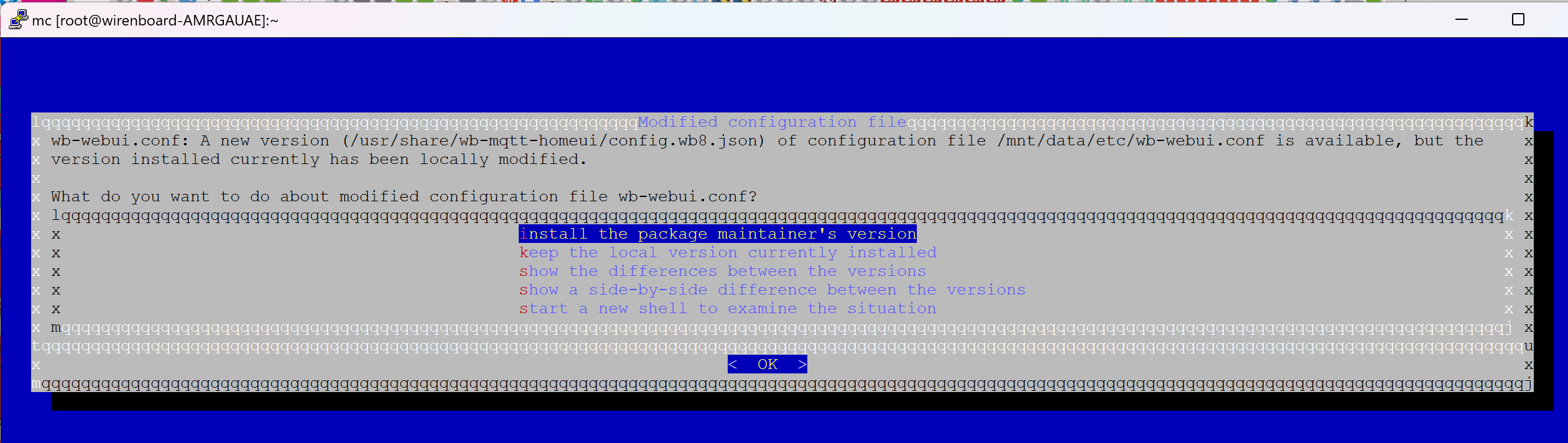 Обновился apt update && apt upgrade при обновлении выбрал настройки webui