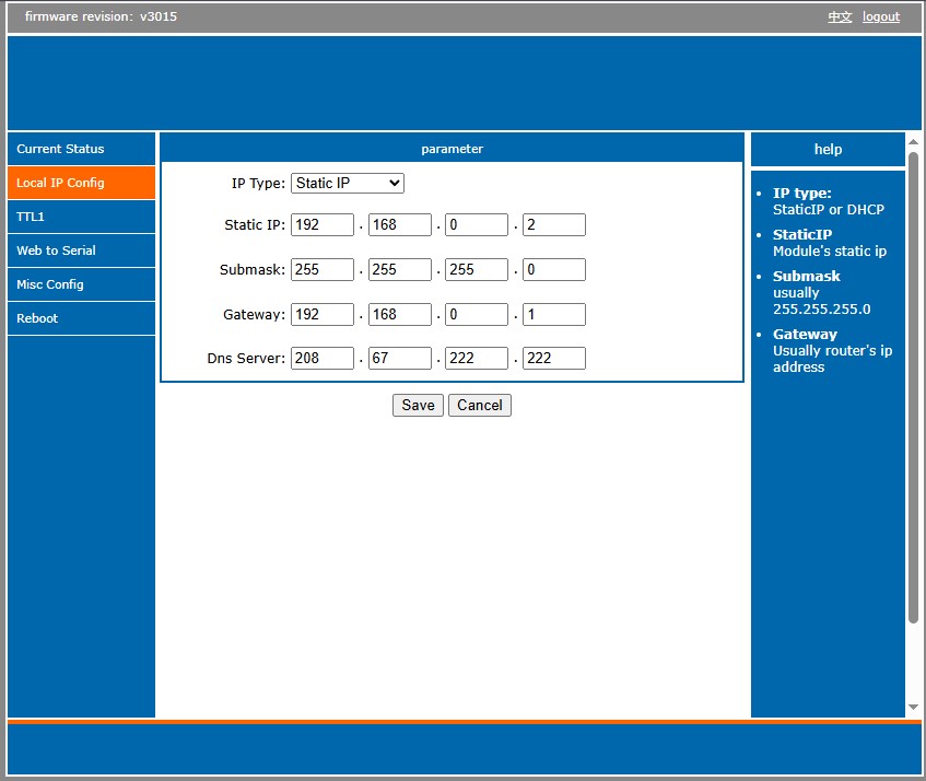 Подключил его ко второму ethernet-порту контроллера, контроллеру выдал адрес 192.168.0.1/24, шлюзу 192.168.0.2/24