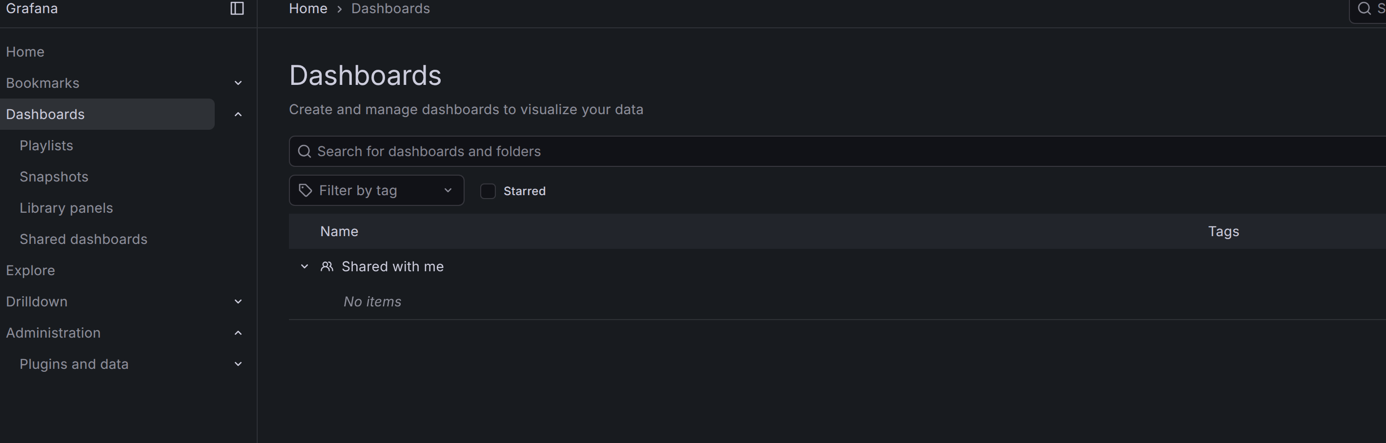 Откройте просто список дашбордов