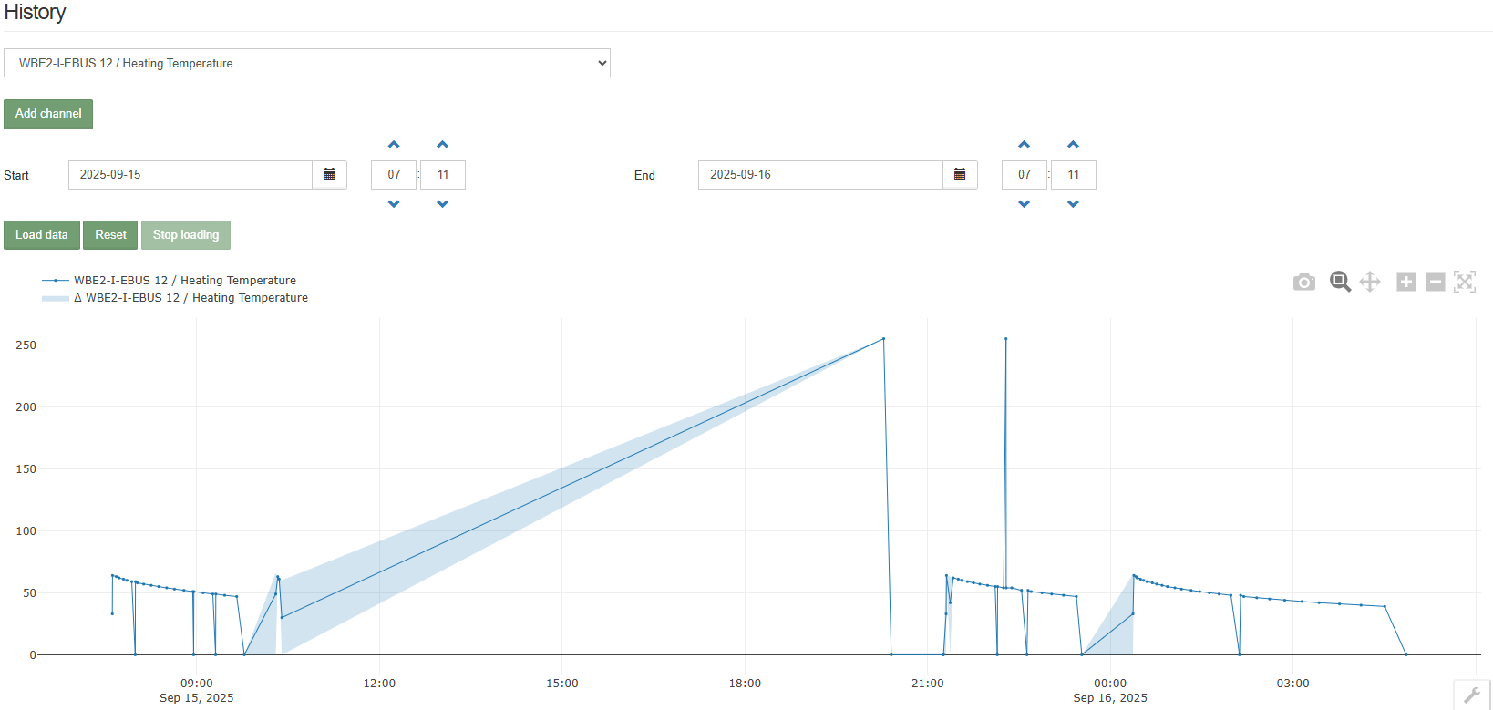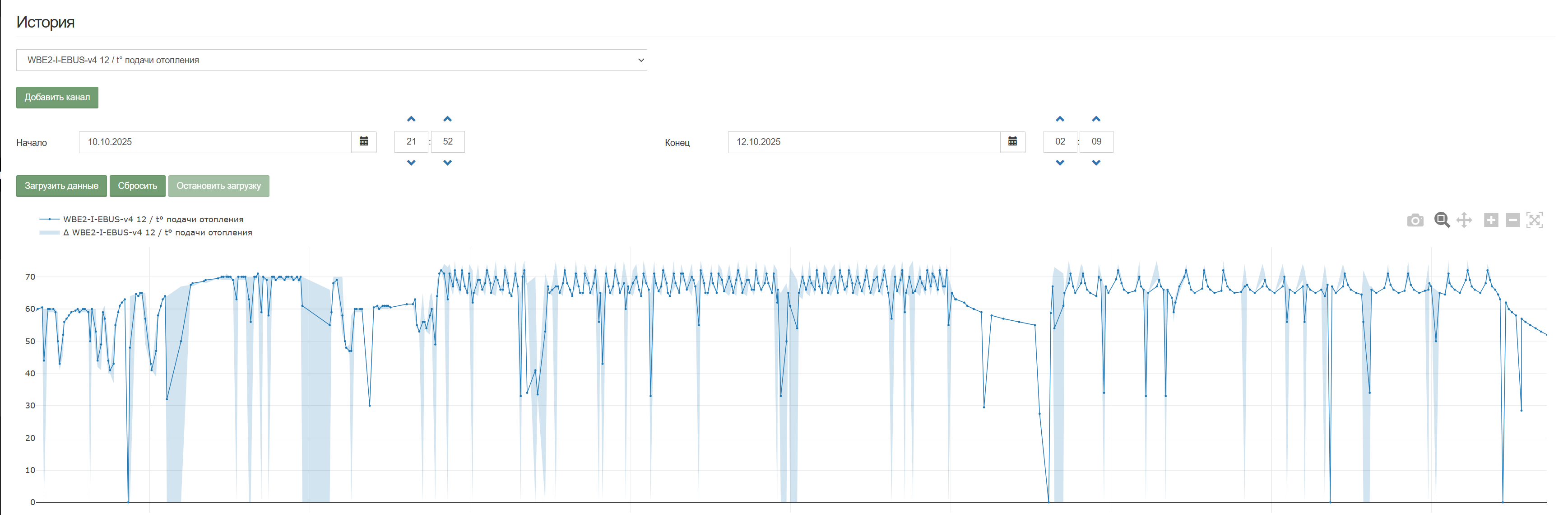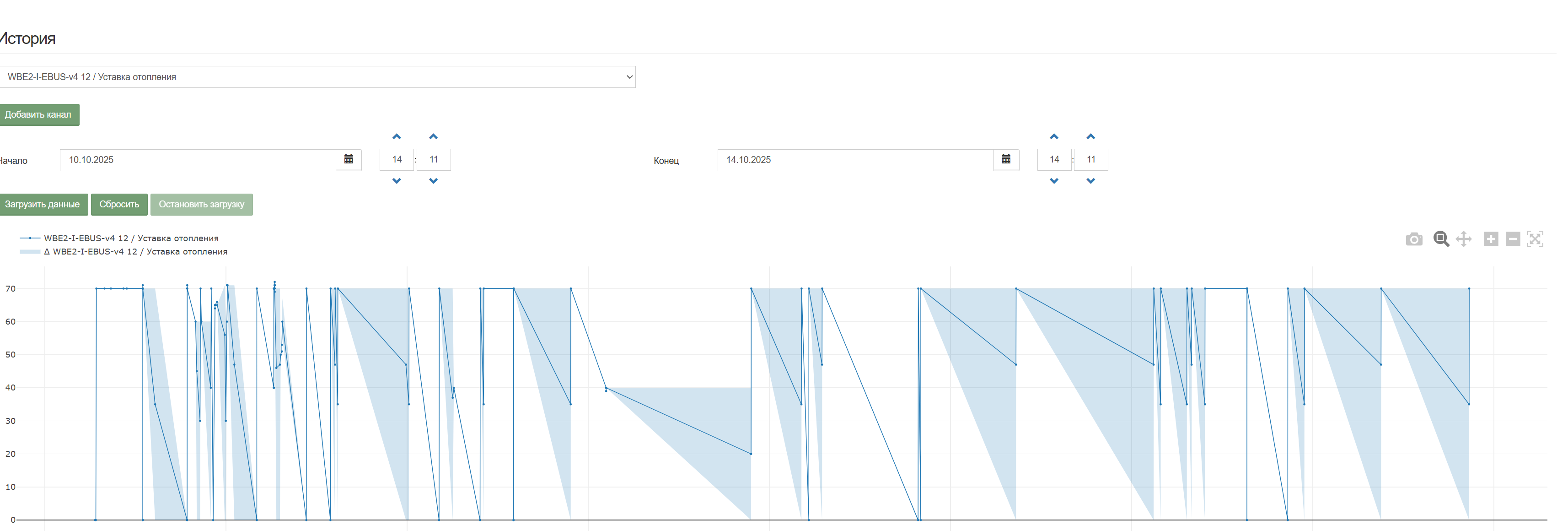 Показывает данные с котла на протяжении примерно часа-двух, потом перестаёт. После перезагрузки Wirenboard всё повторяется.