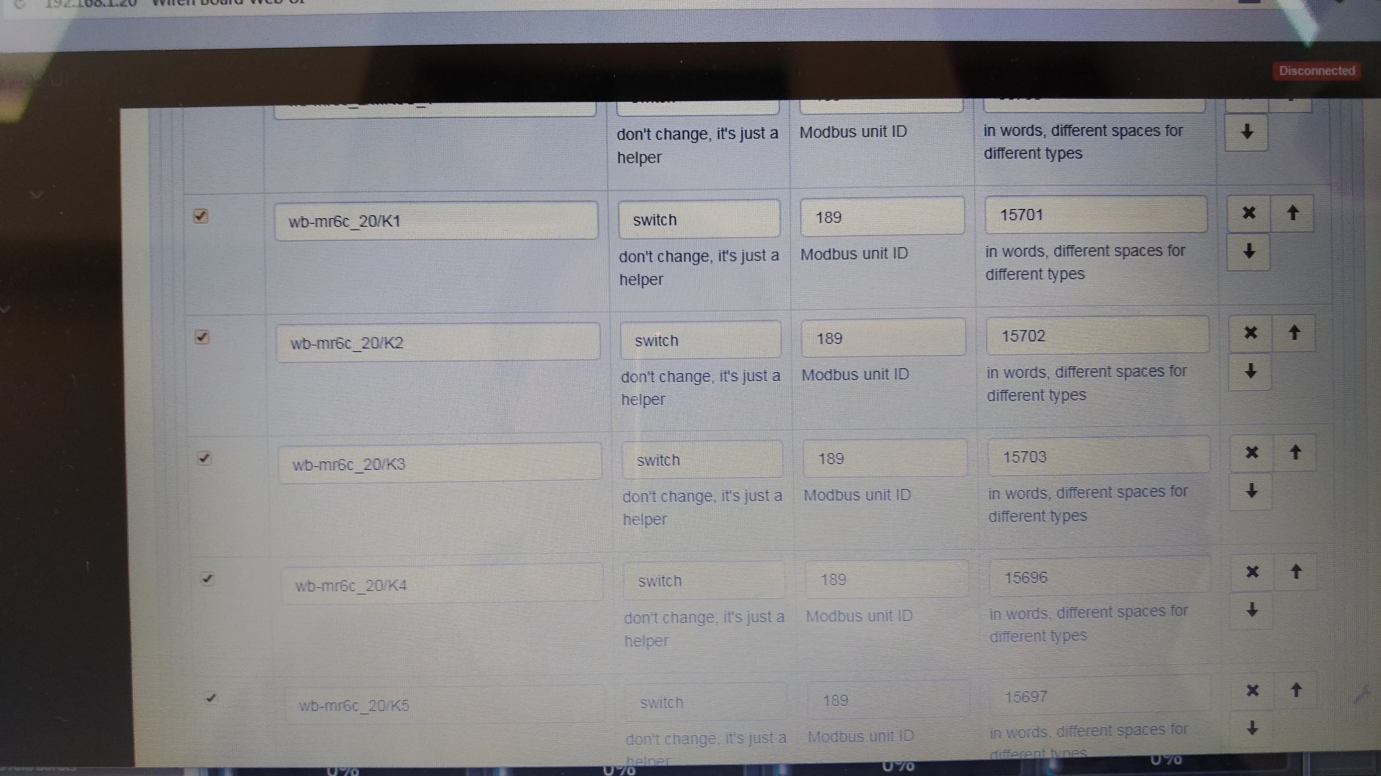 Имеются модули расширения,подключенные по модбасу … Например два диммера,у одного фидбэк получаю с обоих каналов, у другого нет…управление в обоих случаях происходит…такая же история с катушками,только тут вообще фидбэка не получаю,только управляю…в чем дело?