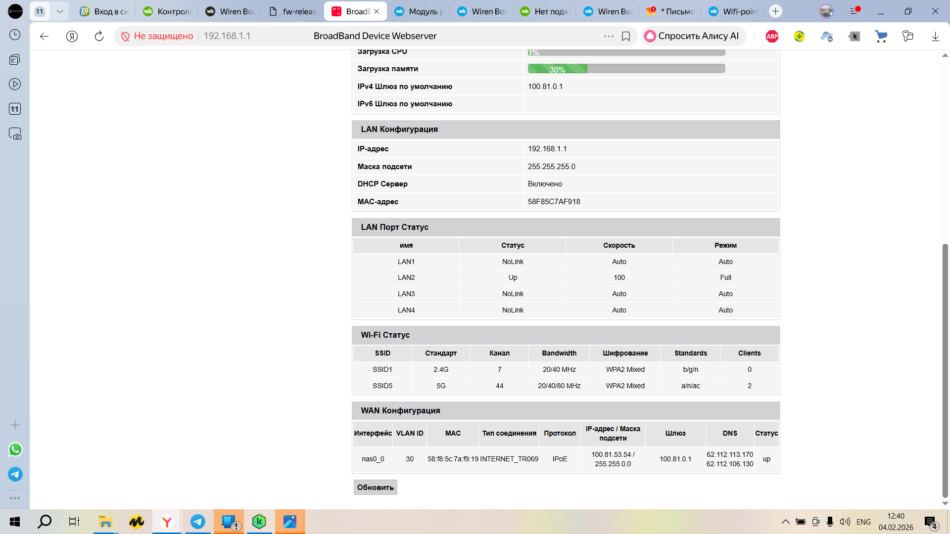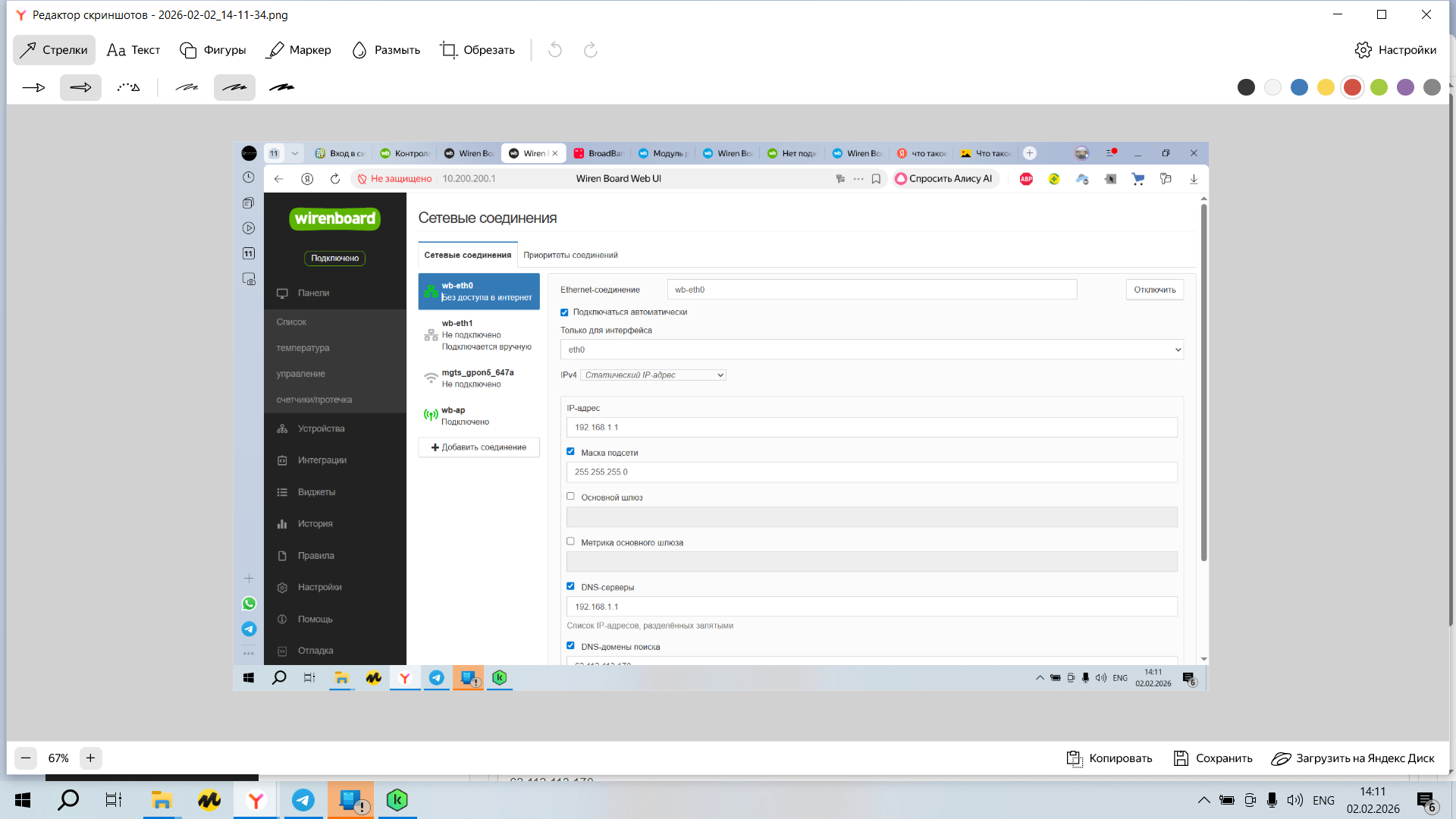 Тема: [Wiren Board Support] Нет подключения через Ethernet;