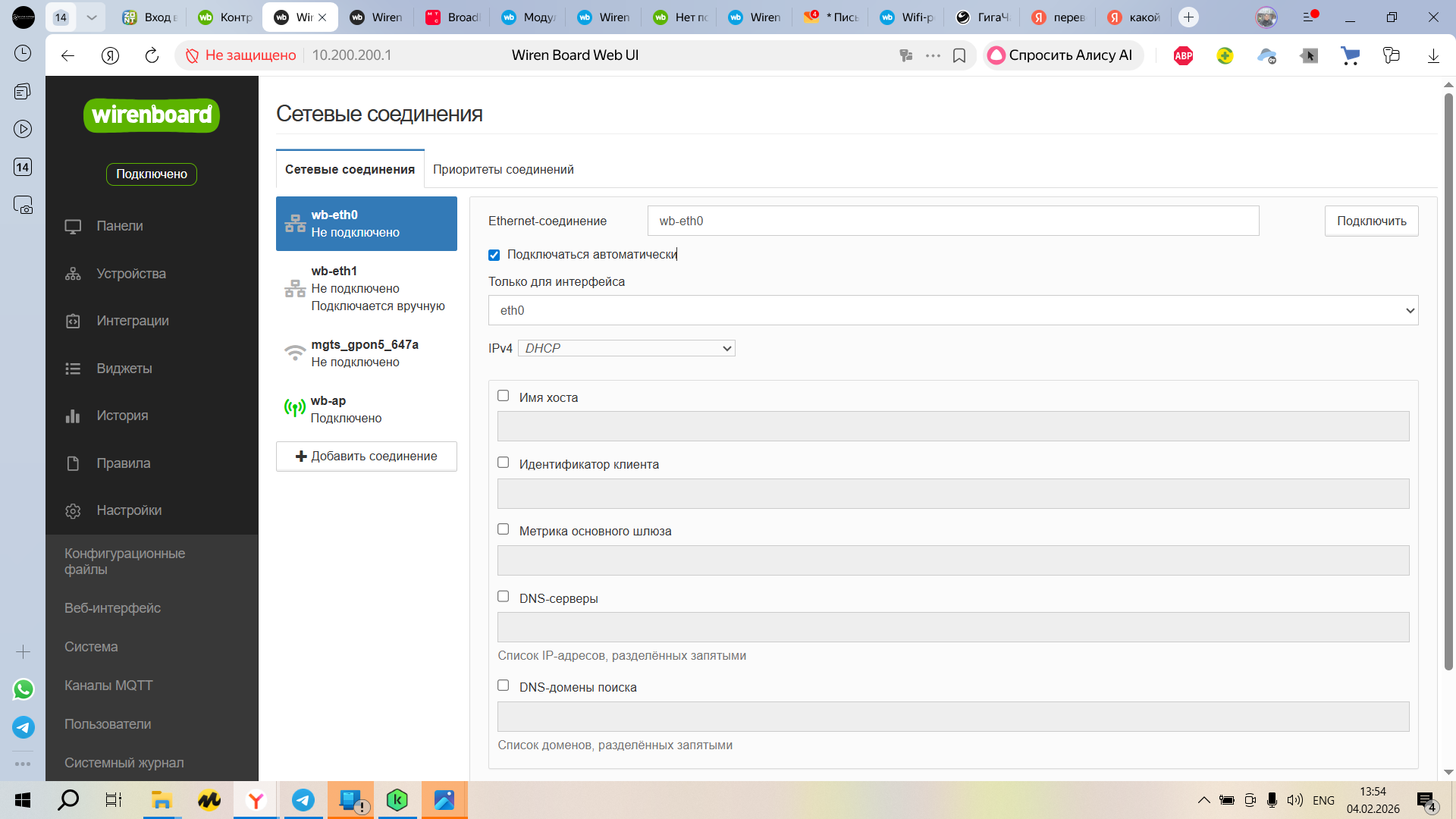 а что использовать в качестве другова устройства? и что прописать при подключении по DHCP? и почему нет подключения по wifi