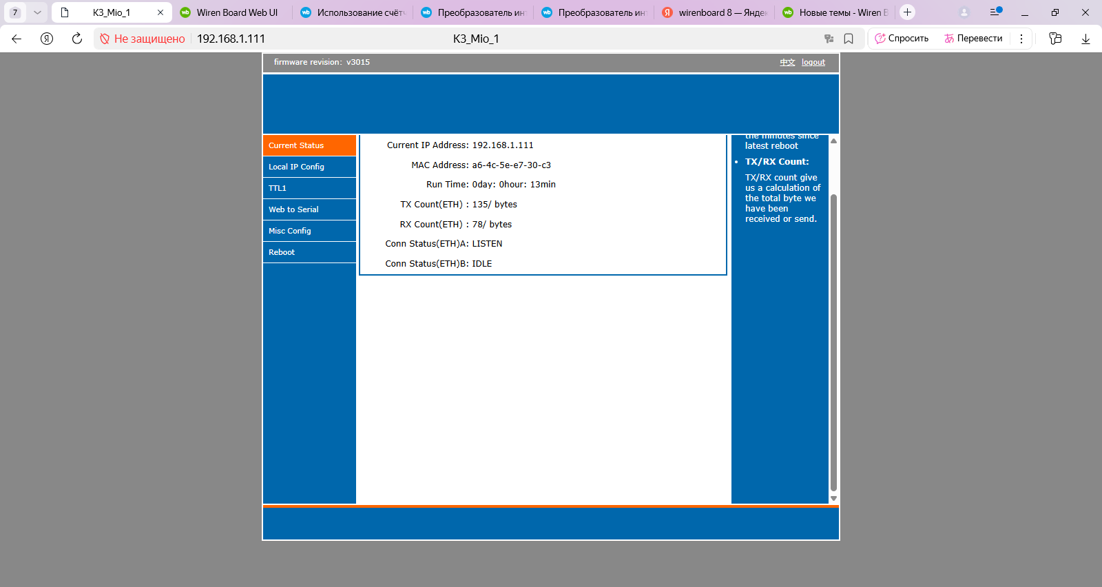 Не видно устройств на шине rs мио, ни счетчика ни mcm8. Когда делается поиск устройств на MIO rx tx отображает запрос на передачу и прием.