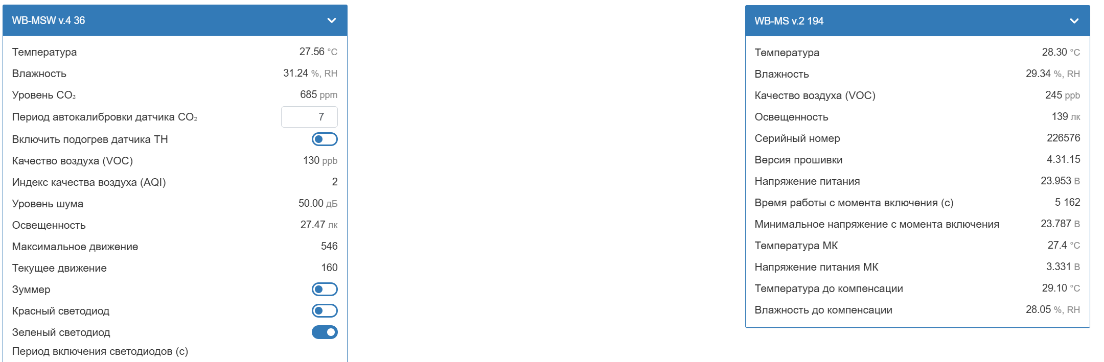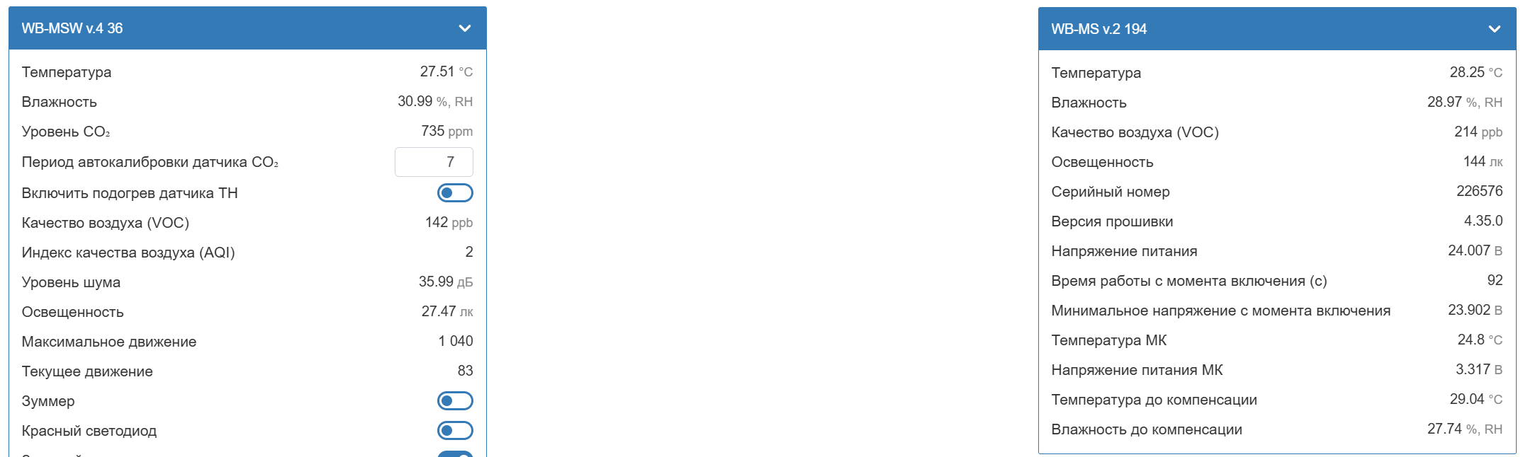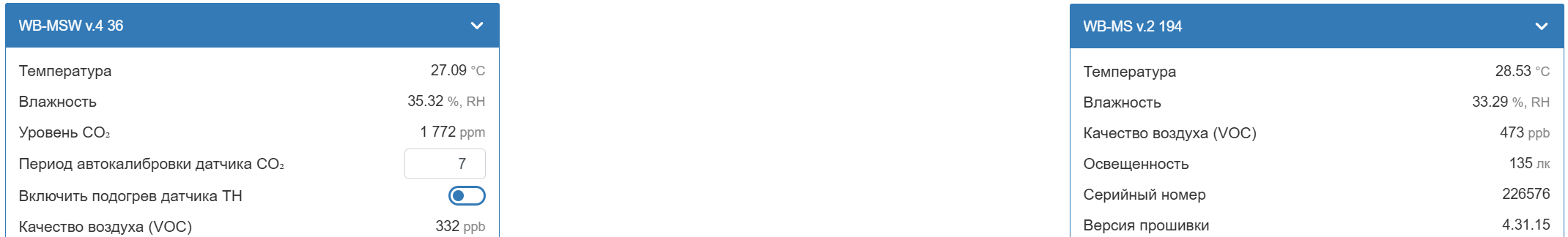 У меня в одном помещении два датчика: WB-MS v.2 (4.35.0) и WB-MSW v.4 (4.35.0)