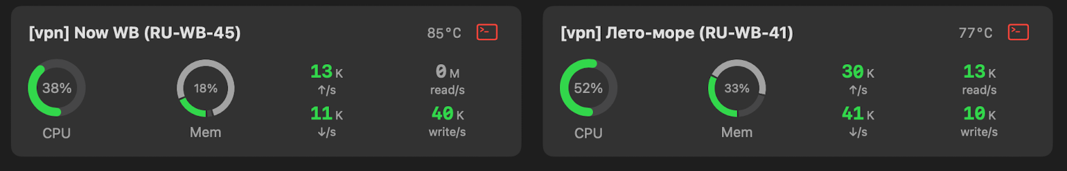 там где 85 - решаю, на днях повысилась. из софта только легкий нодред, впн и заббикс. там где 77 - работает средний нодред, впн, заббикс и ХА, такая температура всегда
