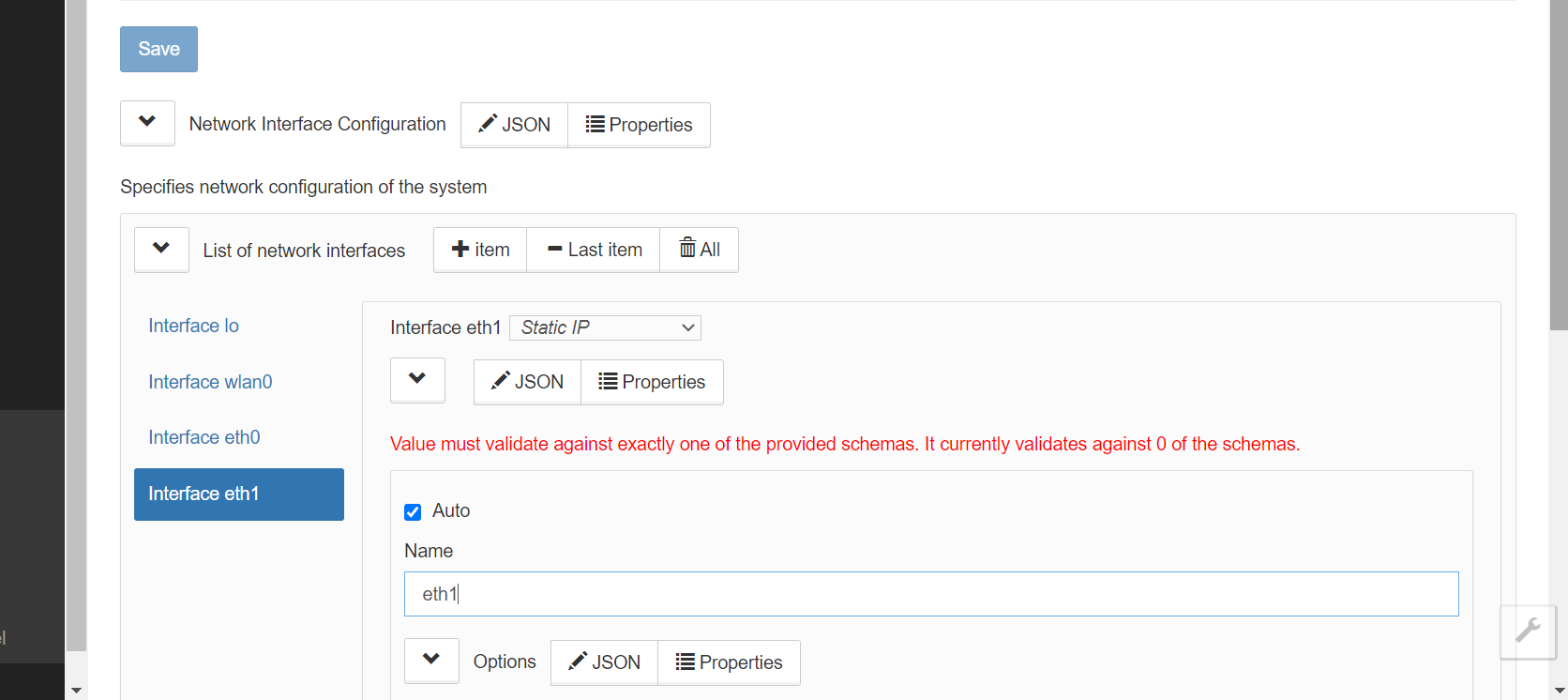 Добрый день! Wirenboard 6, при настройке появляется такая ошибка: Value must validate against exactly one of the provided schemas. It currently validates against 0 of the schemas.