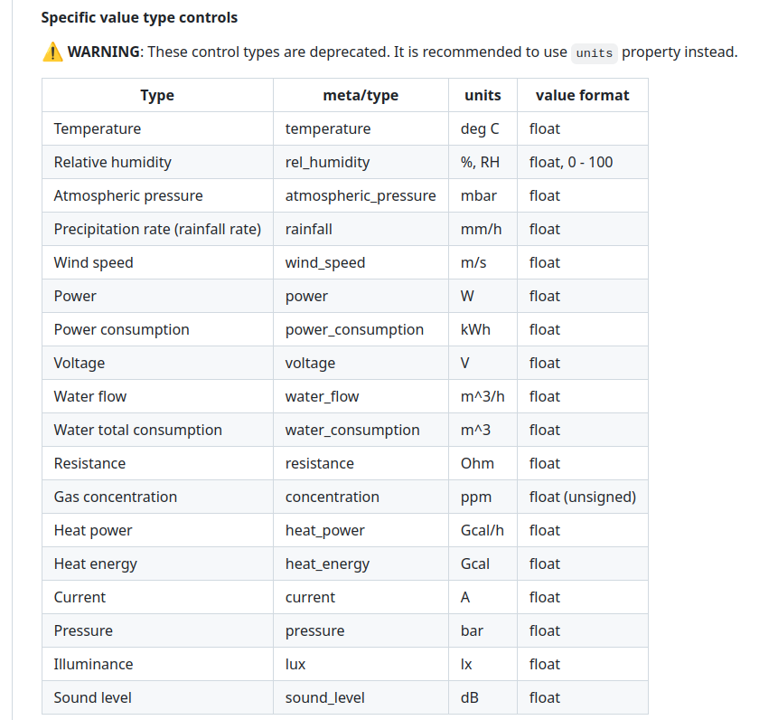 А чем это мешало или мешает? Наоборот, в том же Home Assistant есть device_class, по которому можно понять, что это за сенсор. В WB раньше было так же, теперь вы предлагаете использовать для этого только units? Получается, что units=V — это всегда voltage, или бывают исключения? Вот здесь список всех возможных units? В целом, можно переделать всё на units.