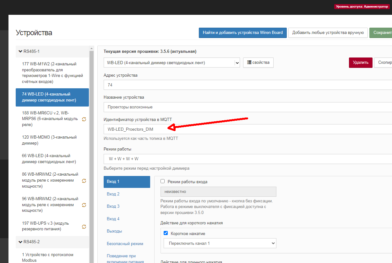 По поводу наименования: сейчас легко определить, что это за устройство, по его имени в mqtt отделив modbus id, который всегда идёт через подчёркивание (например, wb-led_42). Это нужно, чтобы понять, что type=switch у WB-LED это лампа, а у MR6C обычное реле. Было бы хорошо, если бы имя устройства указывалось напрямую в meta. Тогда можно было бы переименовывать mqtt device_name, как многие хотят.