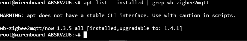 Так же удалось обнаружить, что у вас старая версия wb-zigbee2mqtt 1.3.5 (актуальная: 1.4.1), а так же релиз WB-2410 (актуальный: WB-2507).