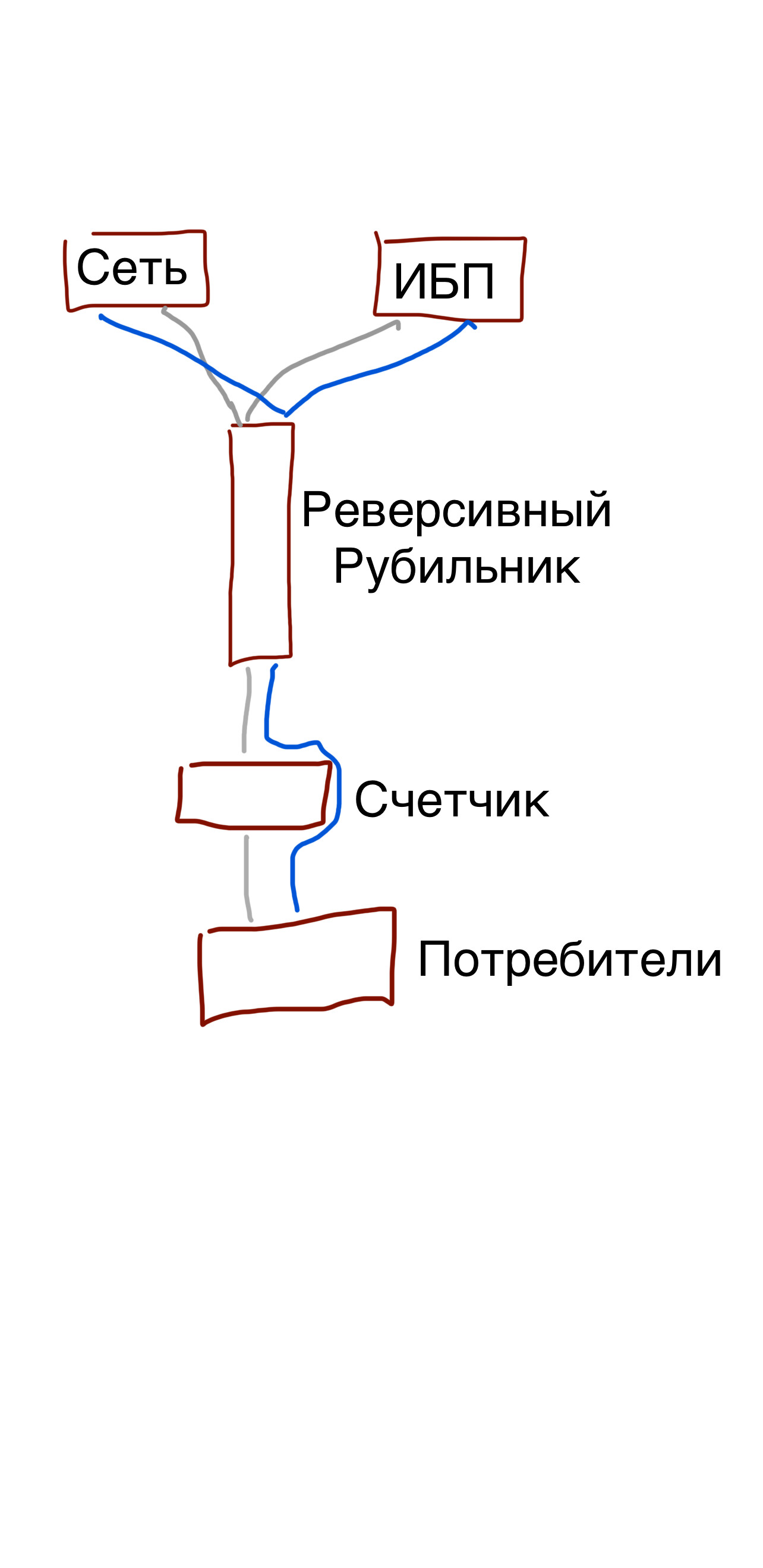 Пришлите схему (можно от руки) подключения к питающей линии ИБП, нагрузки и место установки счетчика в ней.