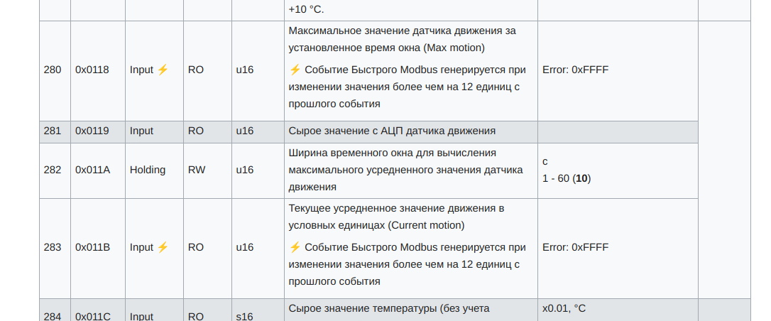 А почему тогда настройка периода опроса температуры работает раз в минуту как указано в настройках того же самого устройства? Как так получается что быстрое modbus устройство одно, но период опроса датчика движения и датчика температуры про разному реализованы?