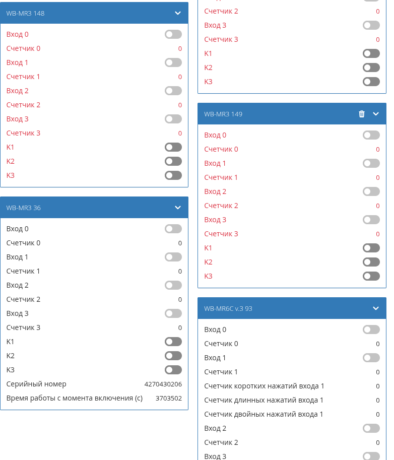 - отключили основное питание контроллера. Реле wb-mr6cu_207/K1 так же откючилось.
