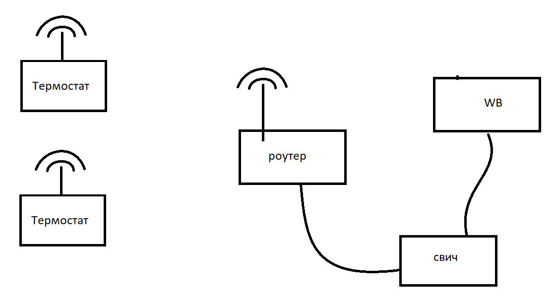 Схема сети №1 - WB и термостаты подключены к роутеру по вайфаю.
