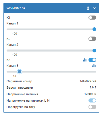 На двух разных объектах стоят модули MDM3. Системы исправно работали 3,5 года и 1,5 года соответственно. После обновления прошивок часть MDM3 при включении нагрузки(нагрузка не менялась за все время) стали выдавать ошибку “Перегрузка”. Мощность подключенных светодиодных светильников 6*9Вт=54Вт явно менее 180Вт номинала MDM3. На другом объекте 1х35Вт.