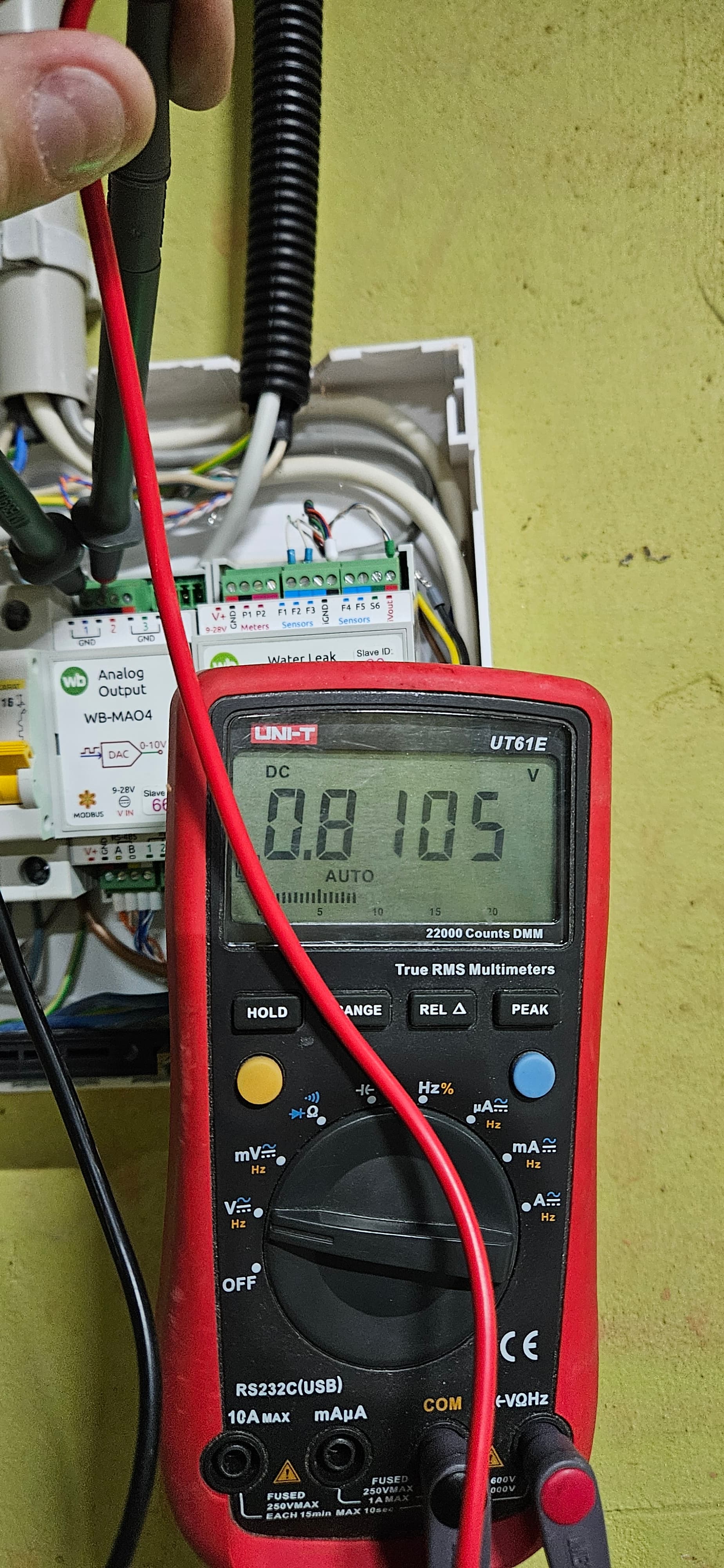 Первый канал WB-MAO, на котором было 0.8 В, при отключении от входа вентилятора 10 В выдает?