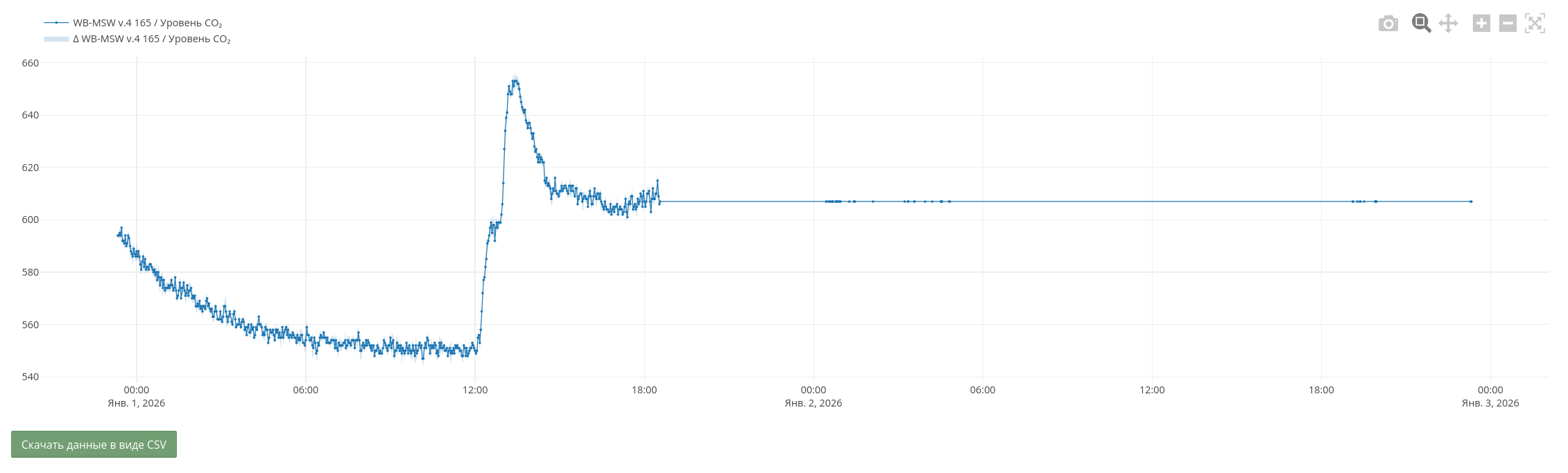 Здравствуйте. Вчера 01.01.2026 года, я кратковременно отключил слаботочную часть щита от питания, а после подачи питания у меня перестали собираться показания CO на WB-MSW v.4