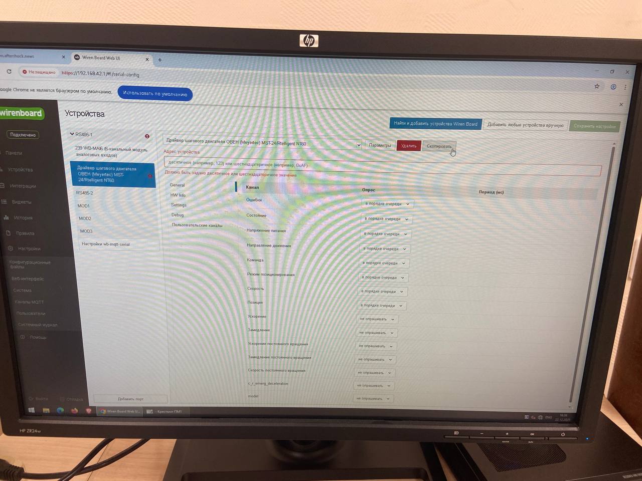 Не подскажите по настройке, драйвер к контроллеру подключили, оба прибора мигают зеленым, но возникли вопросы по настройке в веб-интерфейсе