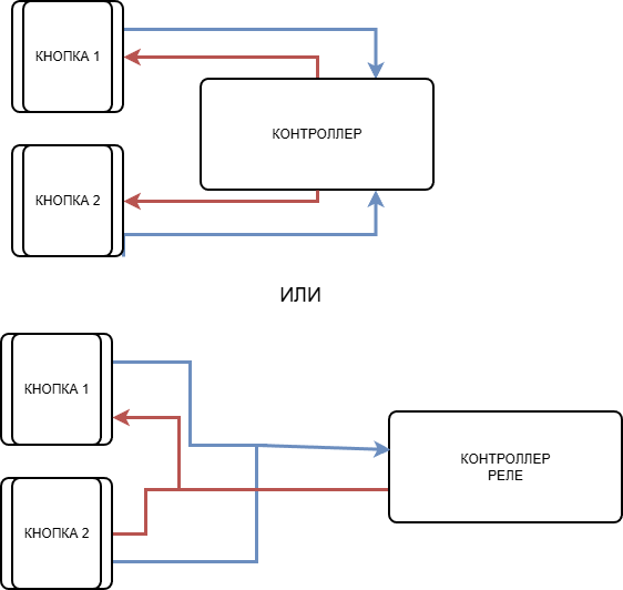 Второй вариант позволяет сэкономить на проводке, но в случае изменения сценариев или добавления новых кнопок в будущем потребуется пересмотр всей системы, а также будет сложнее диагностировать проблемы.