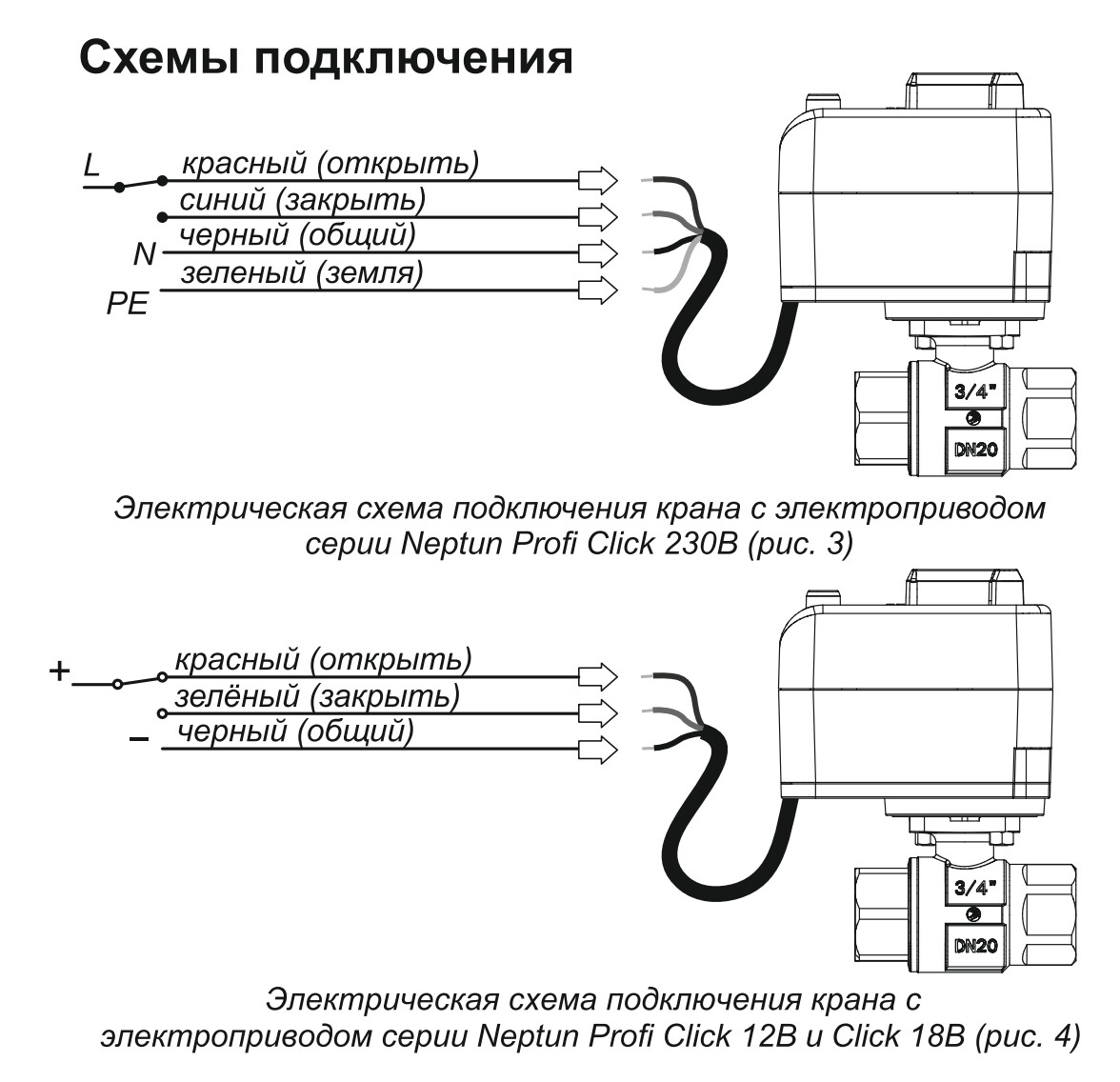 Здравствуйте! Смотрю схему подключения крана Нептун. Вижу, что от него выходит один провод, но нигде не вижу фразы о том, что управление и питание производится по одному и тому же кабелю.