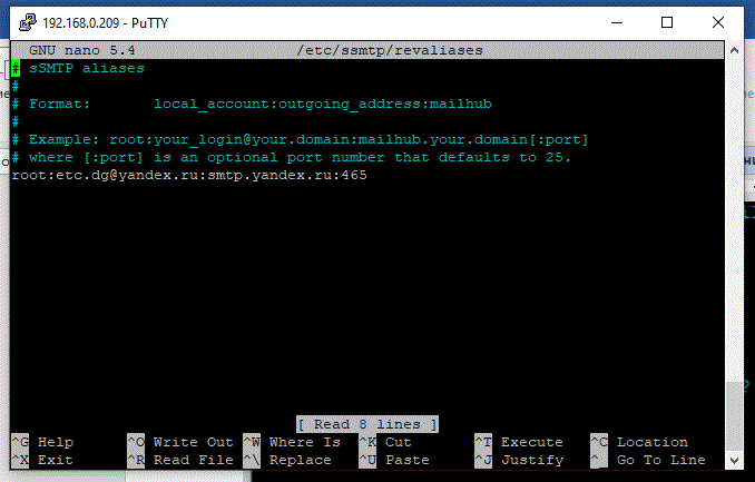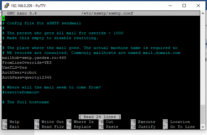 root@wirenboard-ALDUTD2U:~# echo ‘Test’ | ssmtp -v etc.dg@yandex.ru