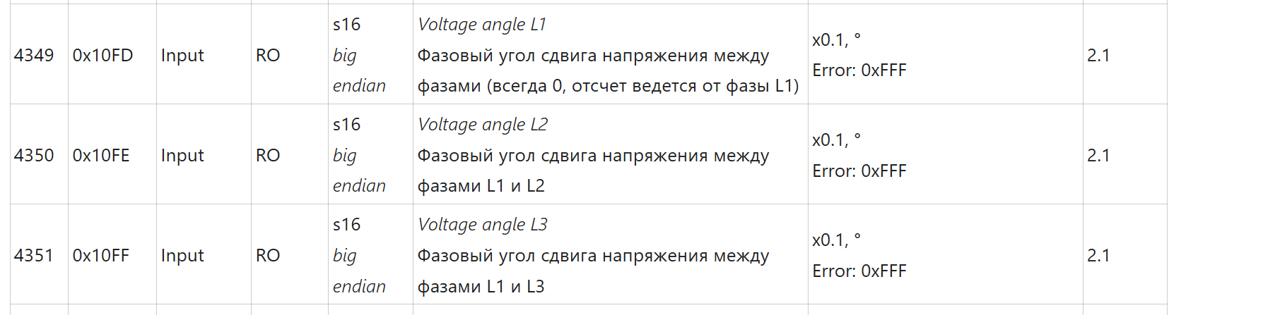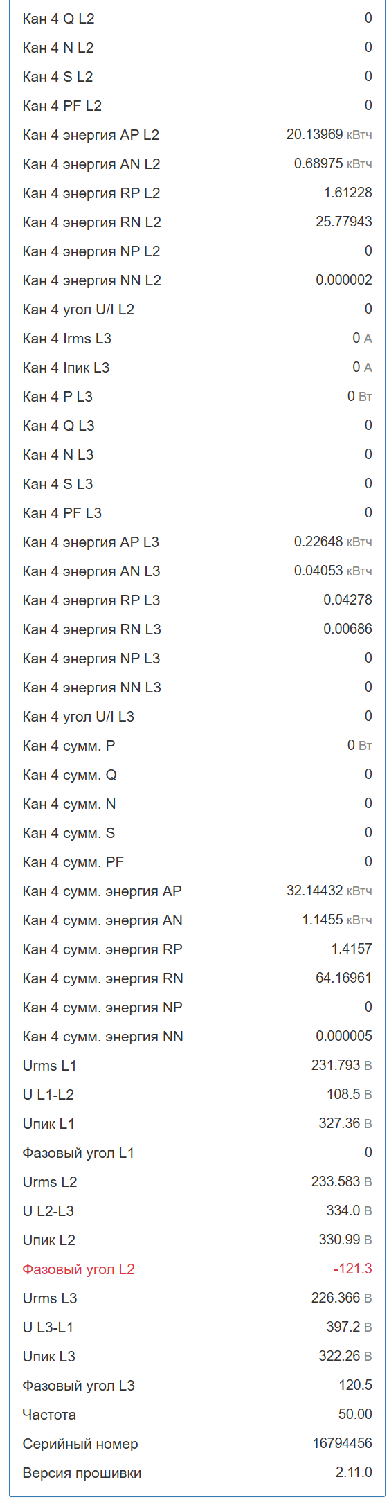 Если фазовый угол L2 не удается считать, то проверьте остальные L1 (всегда ноль) и L3.
