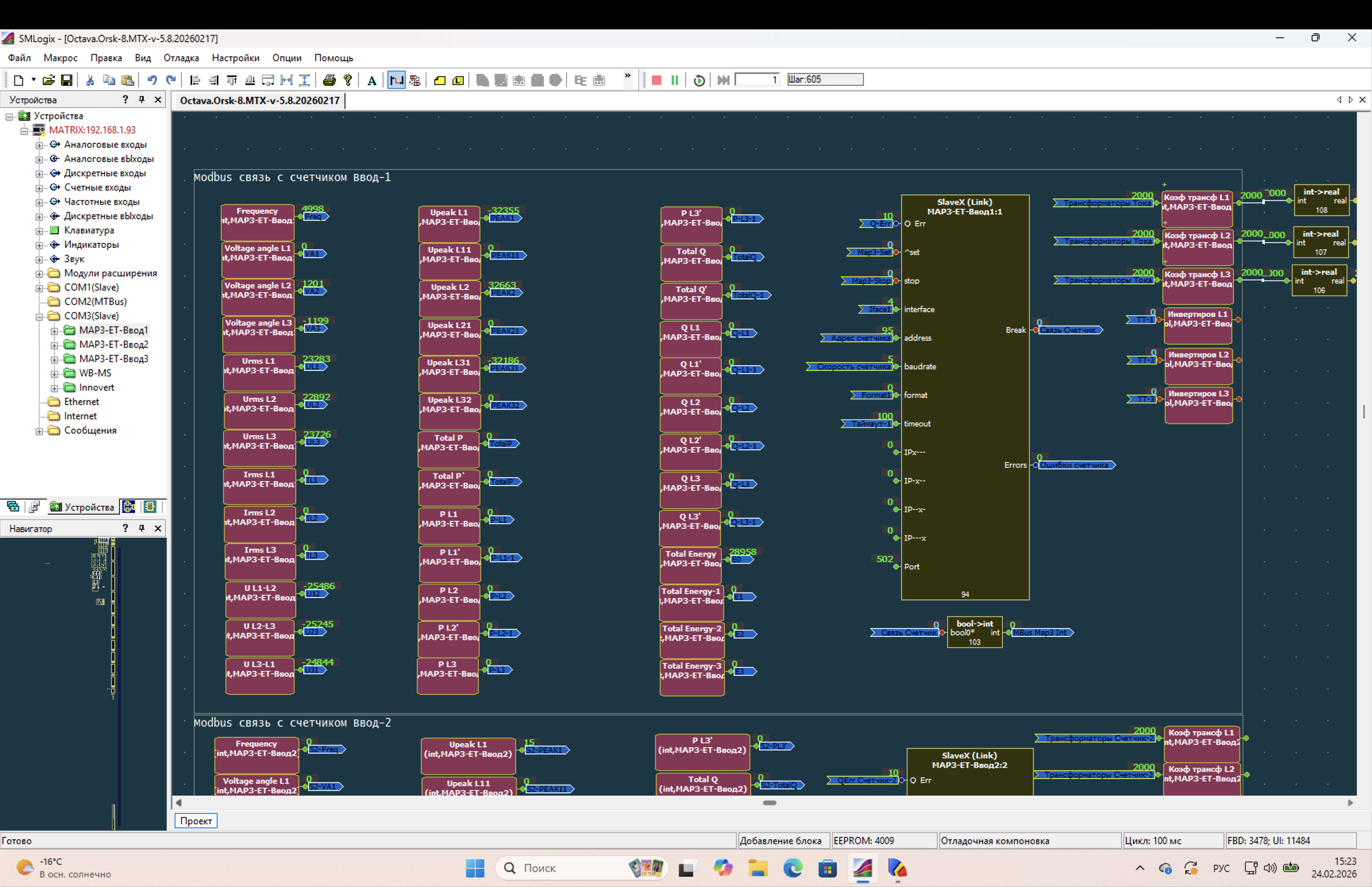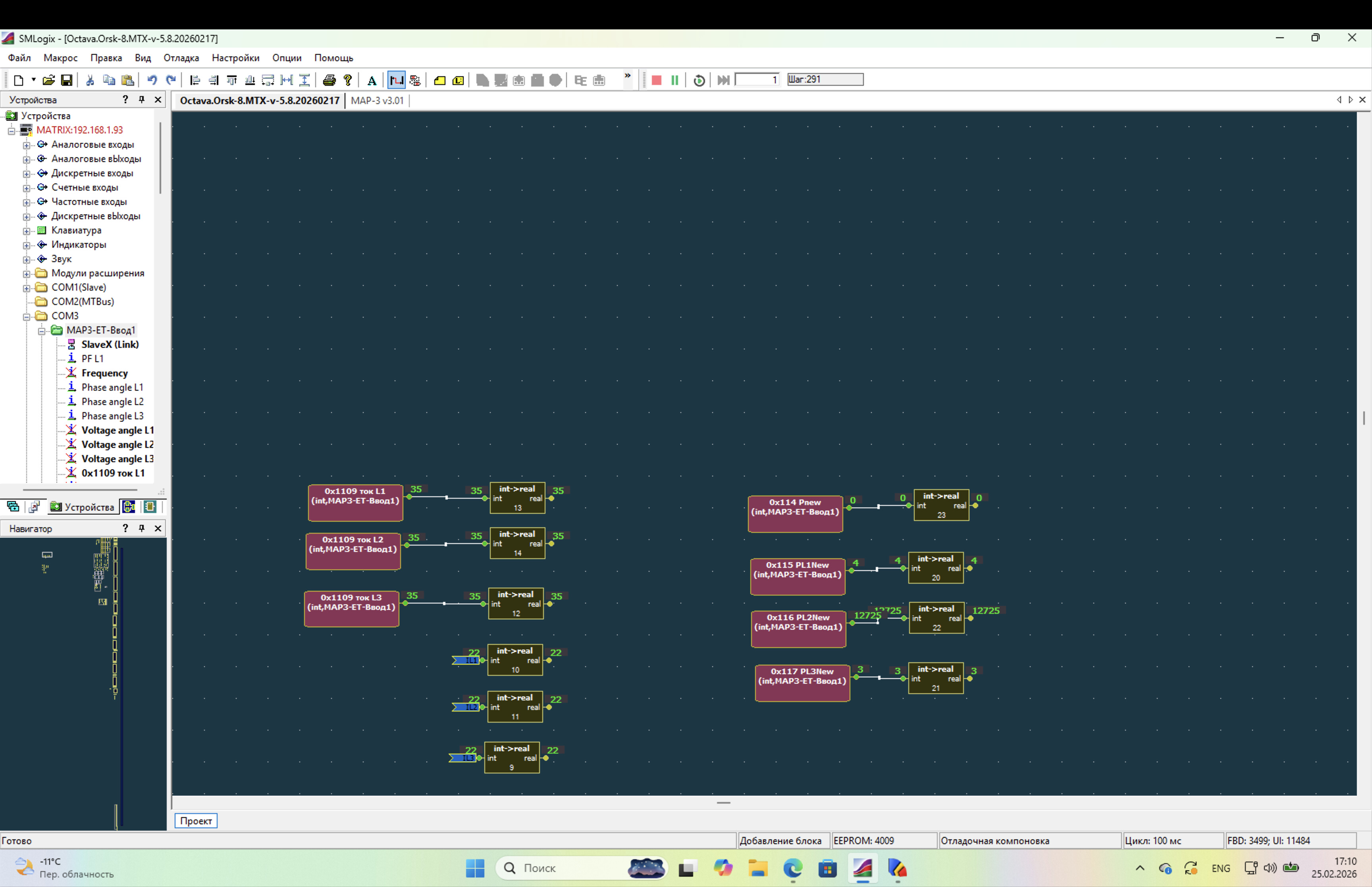 Ну и - добавьте в опрос регистр угла ток/напряжение 0x10F9 и просто ток, 0x1416